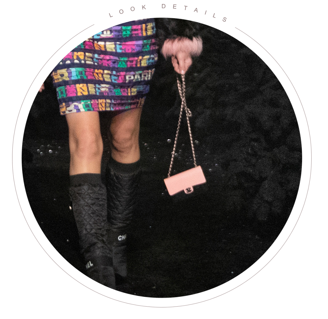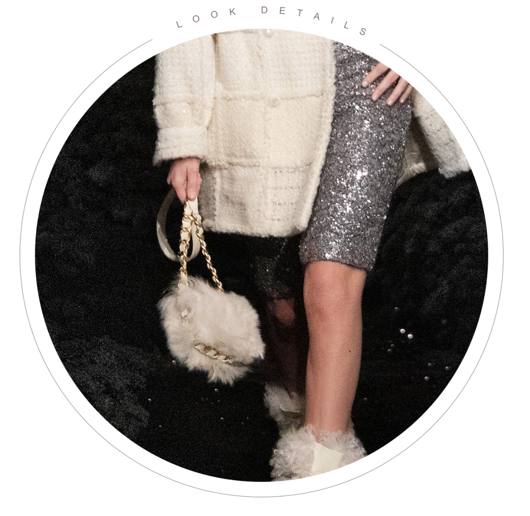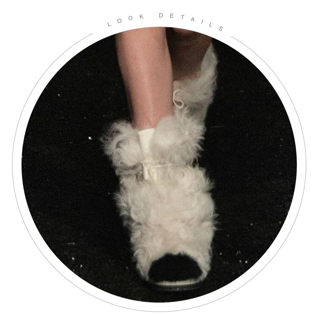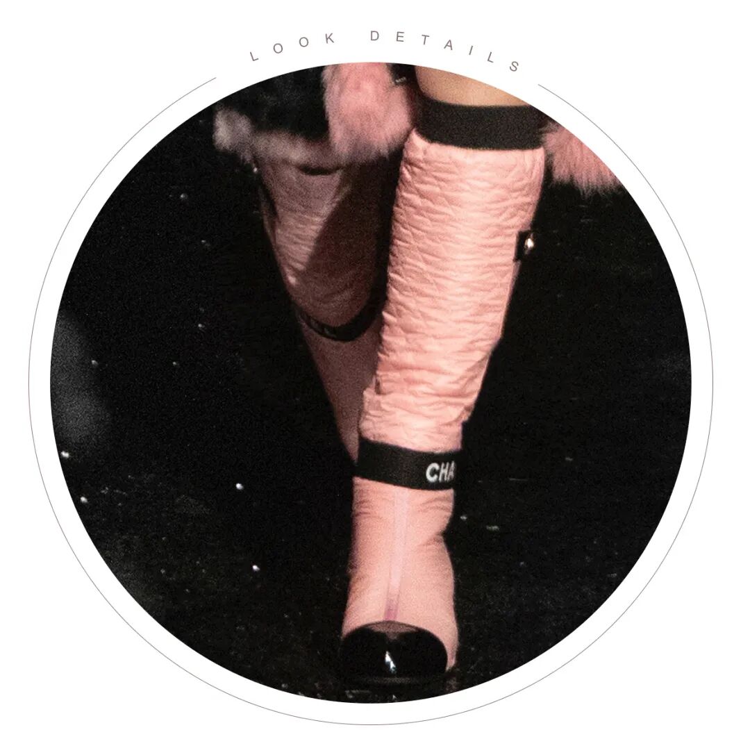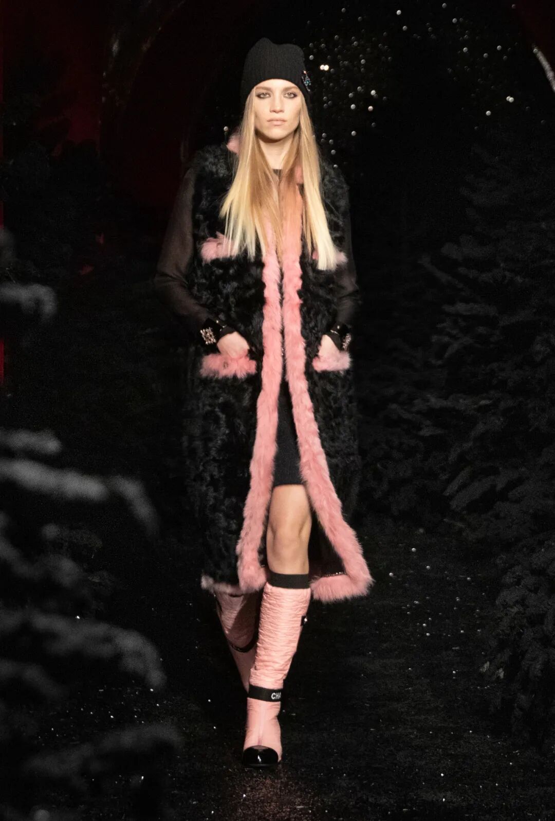 CHANEL 2021秋冬高级成衣系列的新款鞋履也很值得一提,从鞋面材质的选择到鞋样的设计都融合了“滑雪”的概念,毛茸茸的靴子配上CHANEL经典样式的黑白镶嵌设计,蓬松的绒毛与娇嫩的羊皮是冬日里的法式罗曼蒂克。