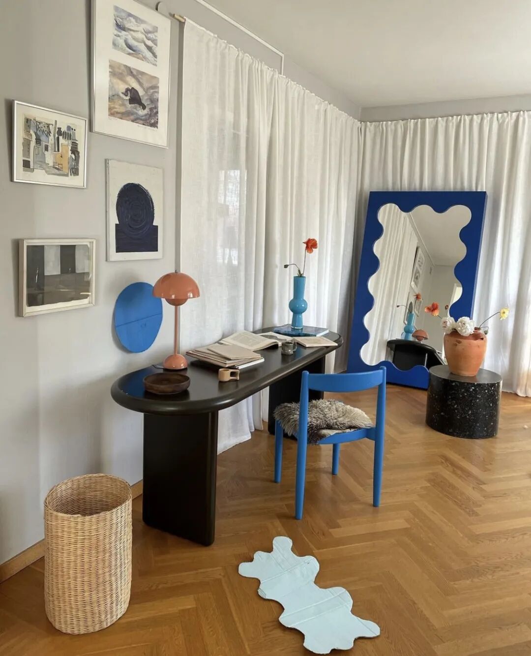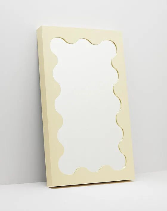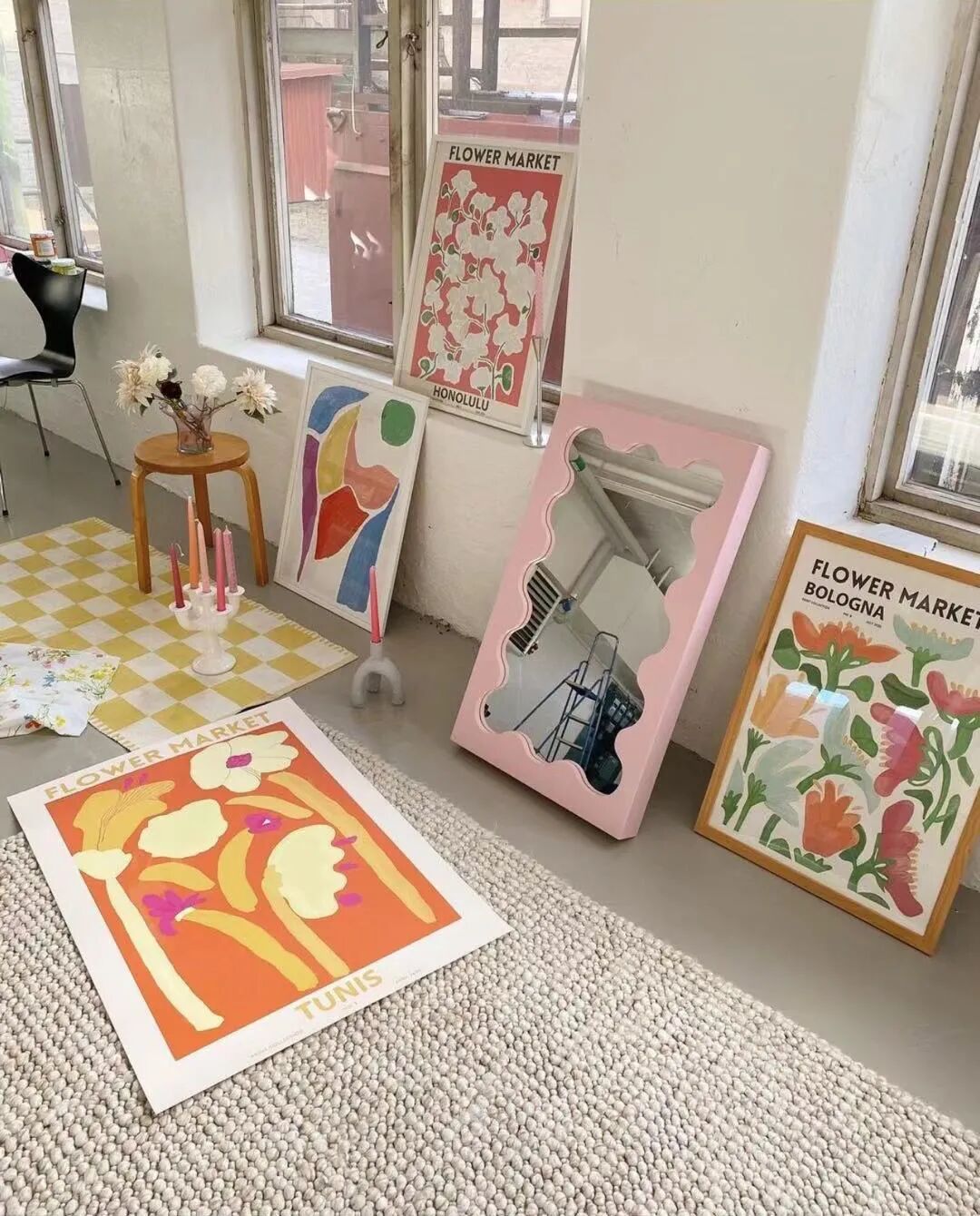 以人气最高的Curvy Mirror镜子举例,运用了饱和度极高的色彩和富有新意的图案,构图采用波形曲线,安安静静放在那儿就为家里充满了具有流派感的艺术性,真心觉得每个爱对镜自拍的女孩都应该拥有一面!