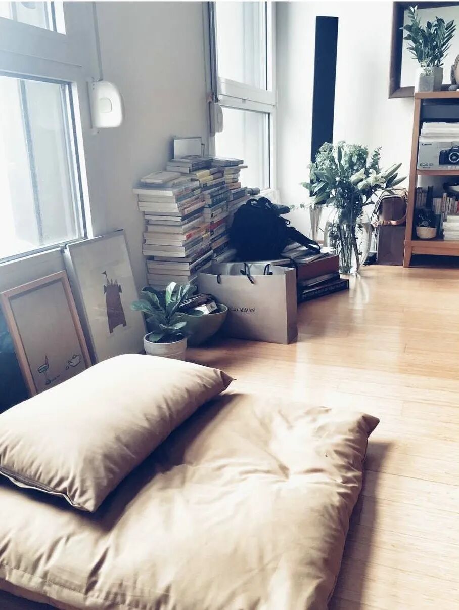 坐垫和靠背都由羽绒填充,还加入了不变形材料,高级又舒适,随便往那儿一摆,就很撑家中的气场,怪不得被小井称为家里的“硬菜”,后来买过的很多家居配饰都是围绕着这个沙发来搭配的!