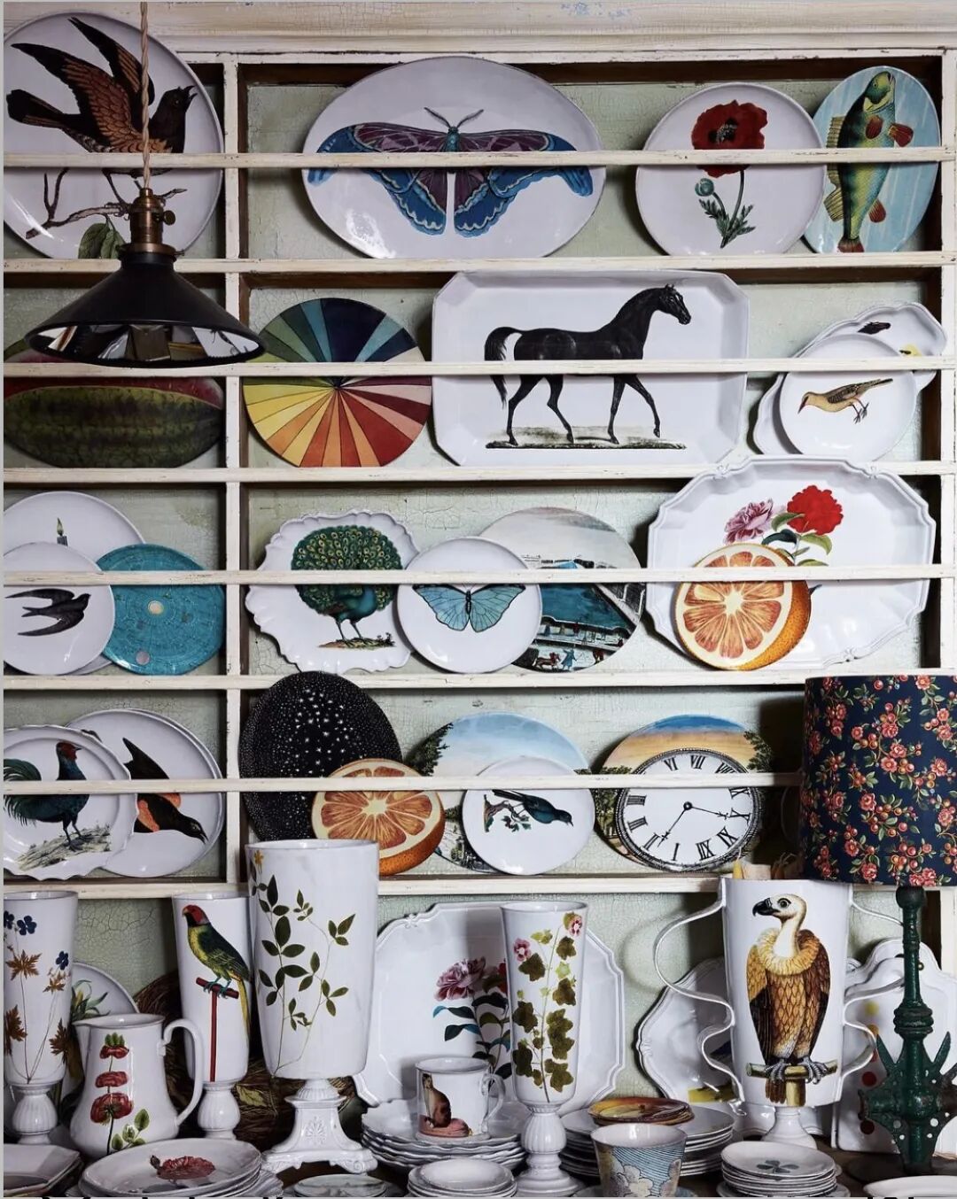 像柜中收藏的Astier de Villatte就很特别,它家用的是黑色淘泥,全世界只有在少数几个地区才能找到,烧制出的陶制品更加坚硬耐久,每个产品都是独一无二的。