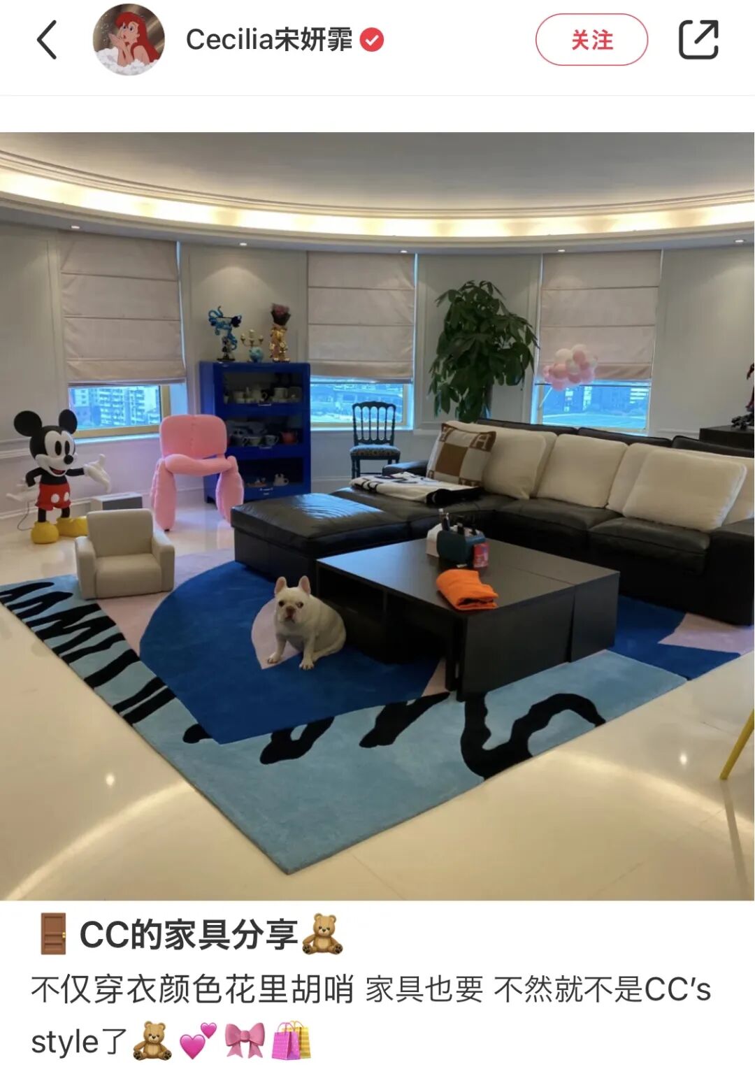 还有人不知道时髦精宋妍霏的家吗?简直就是个“宝藏屋”,古灵精怪的家居摆件在房间里比比皆是,经常在社交软件中晒自己家里小玩意儿的她,还附文说:不仅穿衣要花里胡哨,家具也要,不然就不是CC’s style了!
