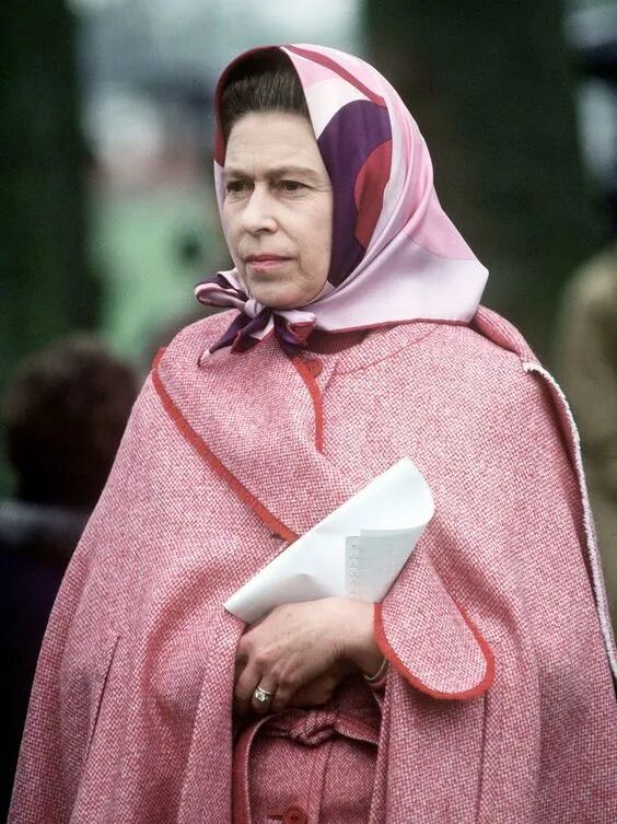 至于头巾的绑法,最简单的也是最适用的,还是要看英国女王。头巾和衣服之间颜色的搭配可以说是天衣无缝。