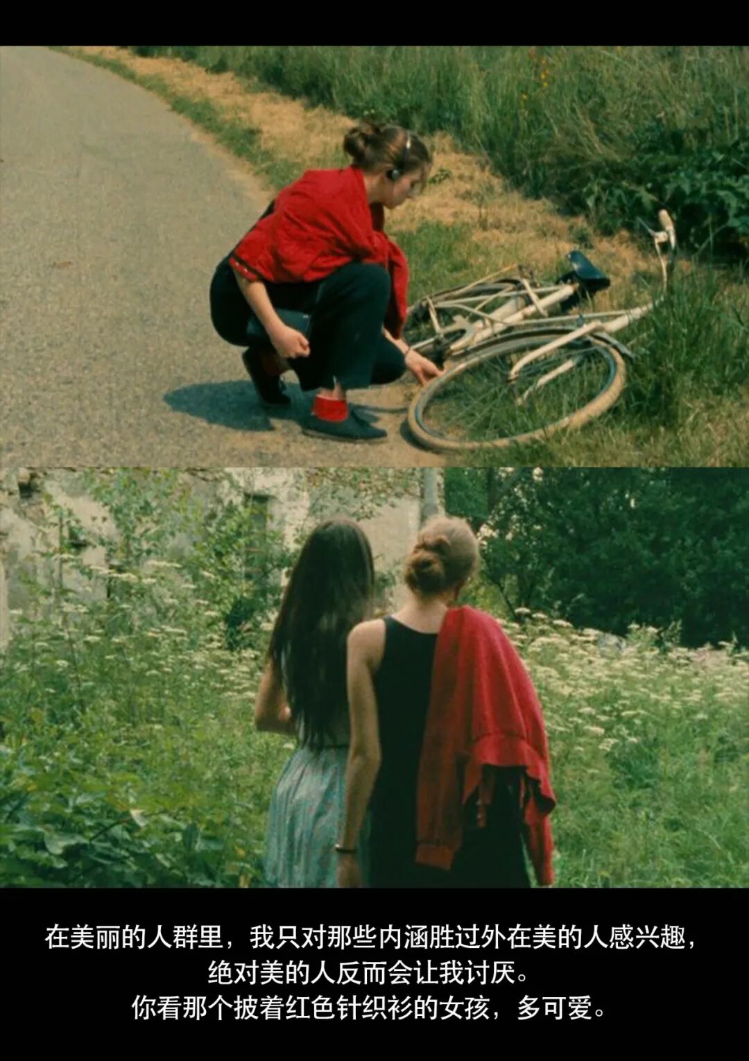 在侯麦电影中的女性总带着知识分子一般的文雅气息,夏秋过渡时节,一件针织衫披在肩上装饰性和实用性兼具。