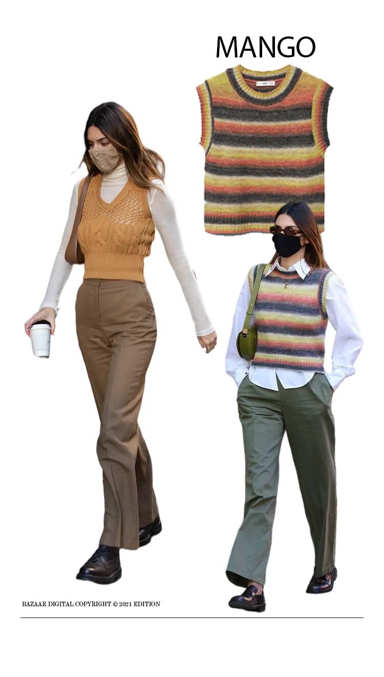 美式辣妹当然要看Kendall的了,这两套毛背心就是秋天色系的完美穿搭。Kendall同款的这件Mango现在打折只需要不到10欧,还要什么自行车呢?这波毛背心复古风潮必然要紧紧跟上。