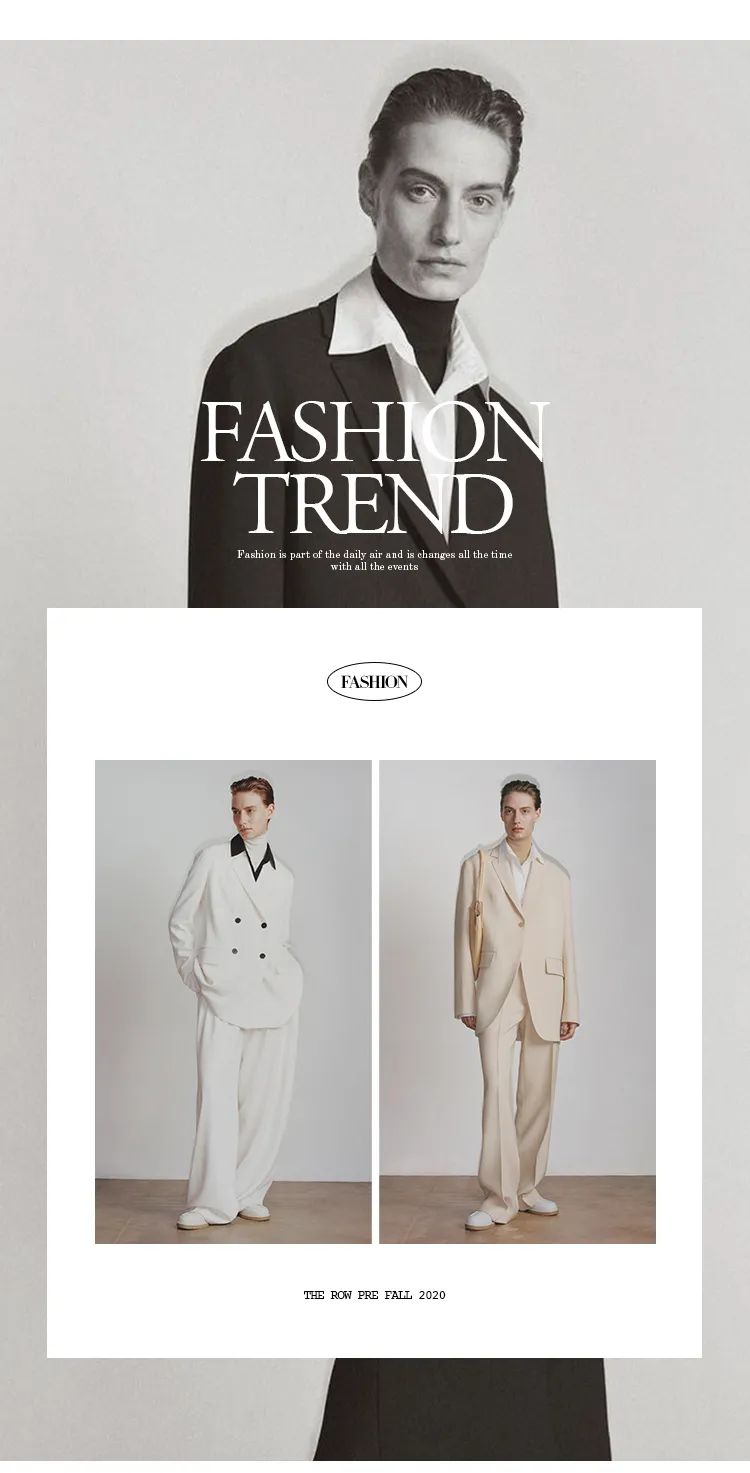 其实很多品牌早就盯上了八九十年代的西装时髦,在原本的基础上创造出了新的流行趋势。极简款的大佬The Row就是继承了80年代的Donna Karan以及90年代Calvin Klein的纽约极简风格,西装永远要成套出现,而翻出的领角是属于90年代的不羁。