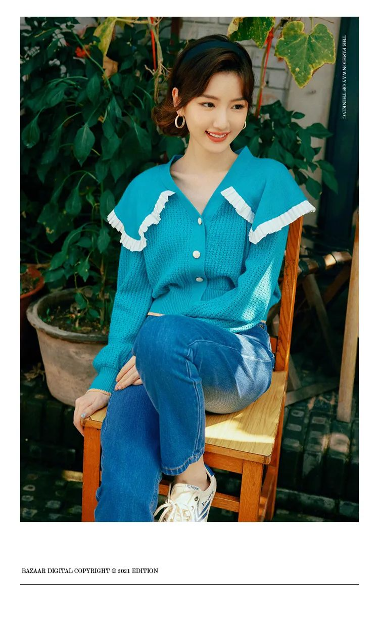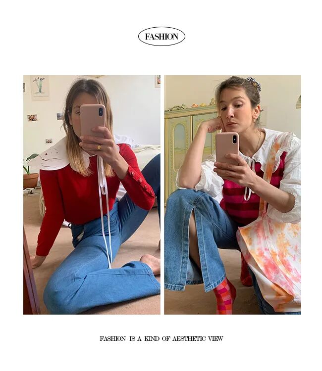 虽然连衣裙款式更有复古感,但对于日常来说,这样的消费性价比并不高,所以大翻领的衬衫可能是更好的选择。马上就能安排的毛衣+衬衫,让大翻领的使用期甚至可以延续到冬季。