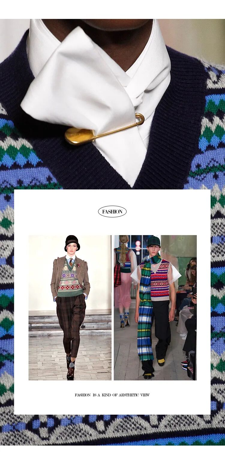 提花款式的马甲自带的复古味道其实就是来自于北欧的费尔岛花纹,这种让人不禁想起圣诞节暖光的花纹经过不断改造,才有了现在各种图案混搭的样子。英国人就很钟情这款花纹,英伦风格的品牌Burberry和Ralph Lauren都曾把这款花纹搬上秀场。
