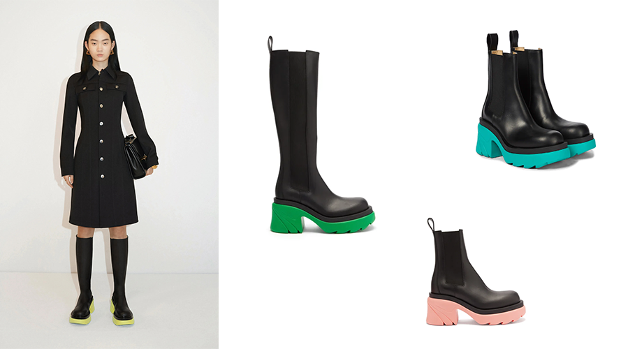 Bottega Veneta在2021早秋Wardrobe系列中推出的Flash厚底皮革及膝靴,应该会成为继The Lug之后的另一爆款。维系品牌一贯具有分量感的楦头,区别于先前的平底的设计,这次 BV送上了粗高跟,不只靴型可以衬托好比例,鞋底更直接让你长高9.5cm。