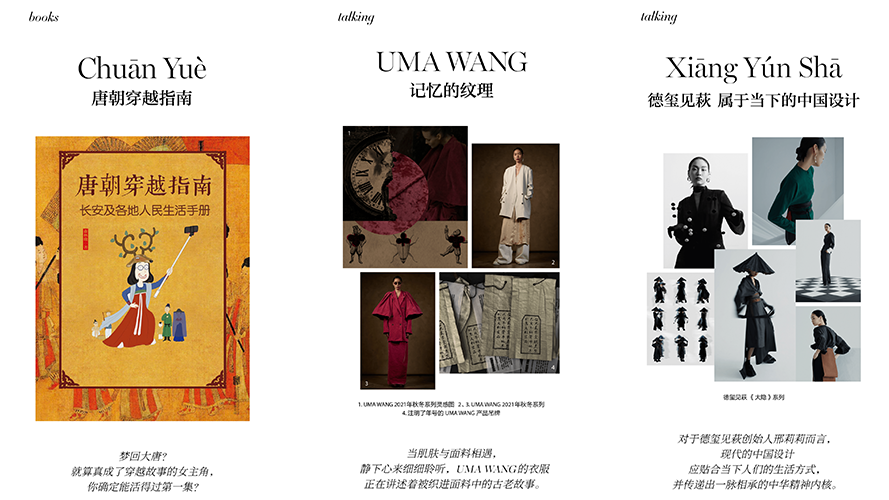 中国设计和传统服饰文化一直是我们在用心分享的内容,九月,借汉服与中秋,献上“蓄谋已久”的这期,一起感受华夏千年的变与不变。我们携手专业汉服研究者,还原各代服饰最本真的模样,超模们身着汉晋唐宋明的襦裙深衣,在云中大漈和十渡景区,山水木石,楼墙倩影,创作了这组芭莎“前所未有”的封面。两组内页大片,将中国传统服饰与现代时装进行混搭,年轻演员们在中式庭院,拨水摇扇,雅致悠闲;模特白日穿梭在杜甫草堂和宽窄巷子,夜间在Club盛装蹦迪,一如成都的魅力,古风潮流融合,多元又包容。“圆”是中国文化的至美意境,本期Fashion List总结了一些可爱的圆形时髦好物,寓意美好又实用:饼状小箱包、球形跟高跟鞋、圆框墨镜和圆形吊坠项链,快来看看有你喜欢的吗?古代有意思的不只有服饰,跟着《唐朝穿越指南》回到古都长安,在文字中身临其境感受唐人生活的方方面面,包括你的恋爱嫁娶。传承至今的中国设计也值得关注,Uma Wang将对古迹的记忆和创作时的情绪织入做旧面料,德玺见萩以香云纱为载体传承中国民间手艺,探索当代中国设计。中秋能吃到好吃的月饼吗?要是还没备货,不妨试试这几家老字号。上海和平饭店经典的“九国套房”中西、甜咸、荤素面面俱到;广州酒家的传统广式双黄莲蓉是招牌,冰皮月饼也可以瞧一瞧;彩丰楼引入粤菜概念,杨枝甘露、陈皮豆沙、养生燕窝都能在月饼里吃到;好嘴到的“状元饼”,拔得博饼头筹,一饼一圆盘,闽南人实在。真心话,这期九月刊处处是惊喜,页页有宝藏,值得细品。