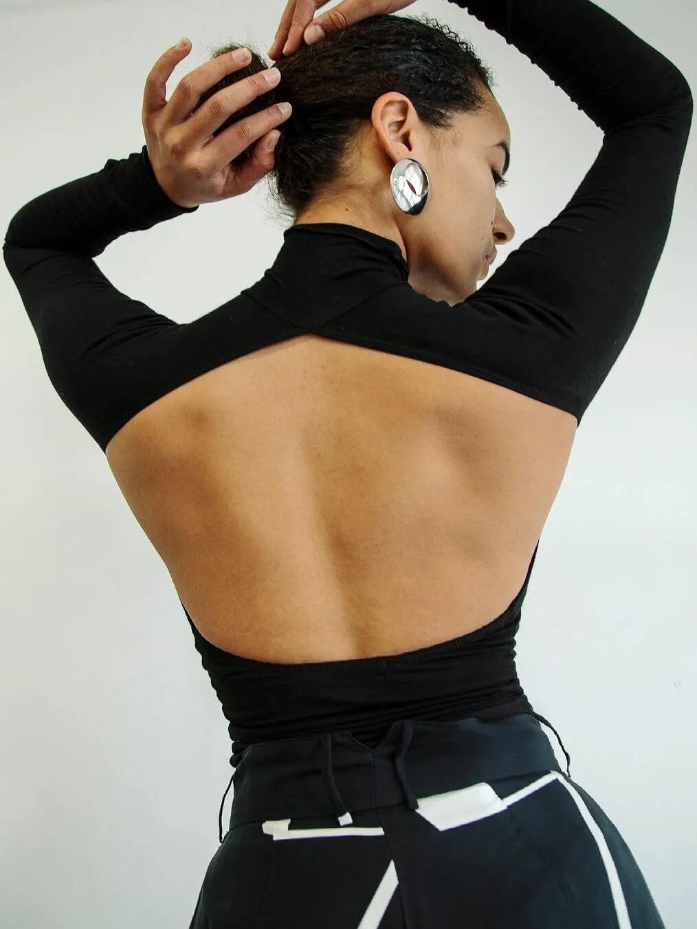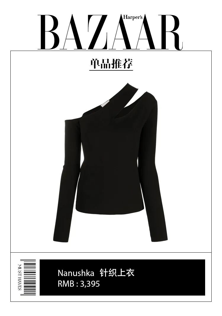 迪丽热巴上身的这件Nanushka打底衫几乎可以说是显瘦王者,既遮挡了上臂又露出了肩部线条,解构的设计也足够有看点。谁说打底衫很无聊,这样一件有设计感的黑色打底衫绝对是值得投资的单品。