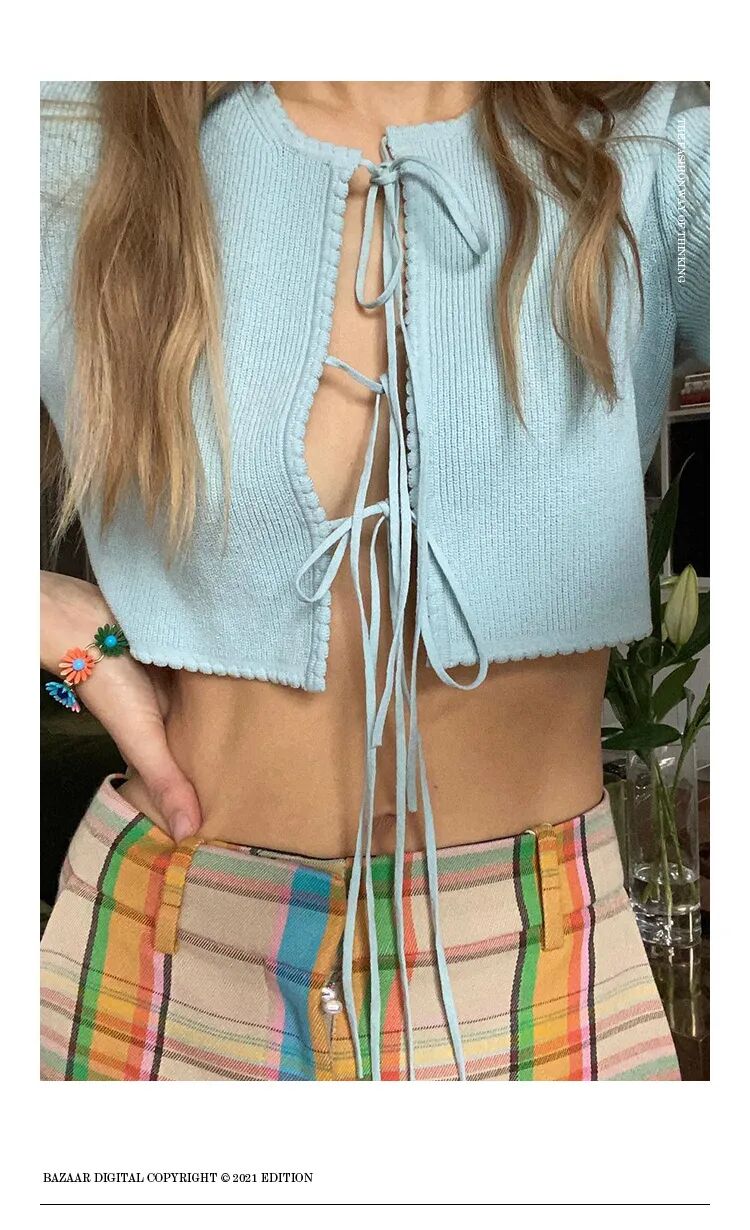 除了扣子还有绑带款式,可以更加随意地控制露肤程度。