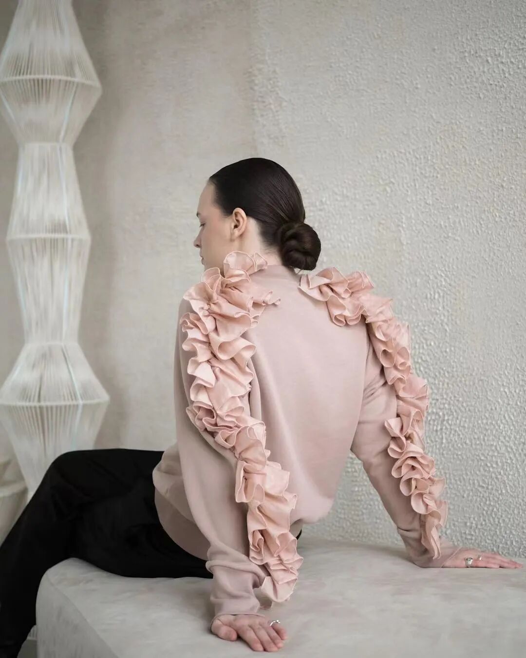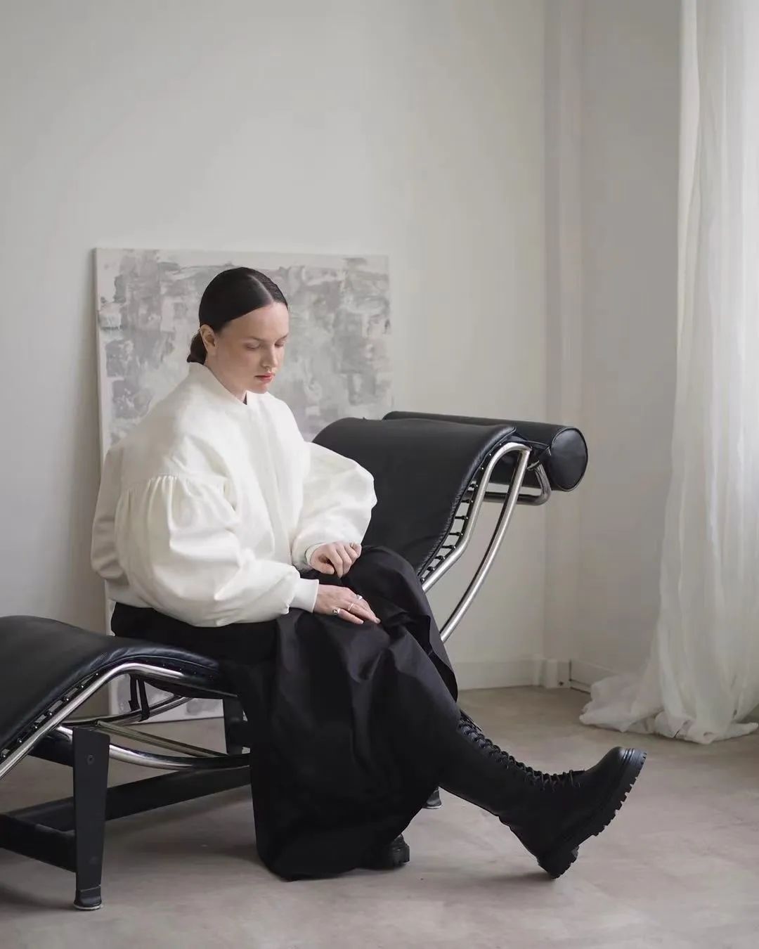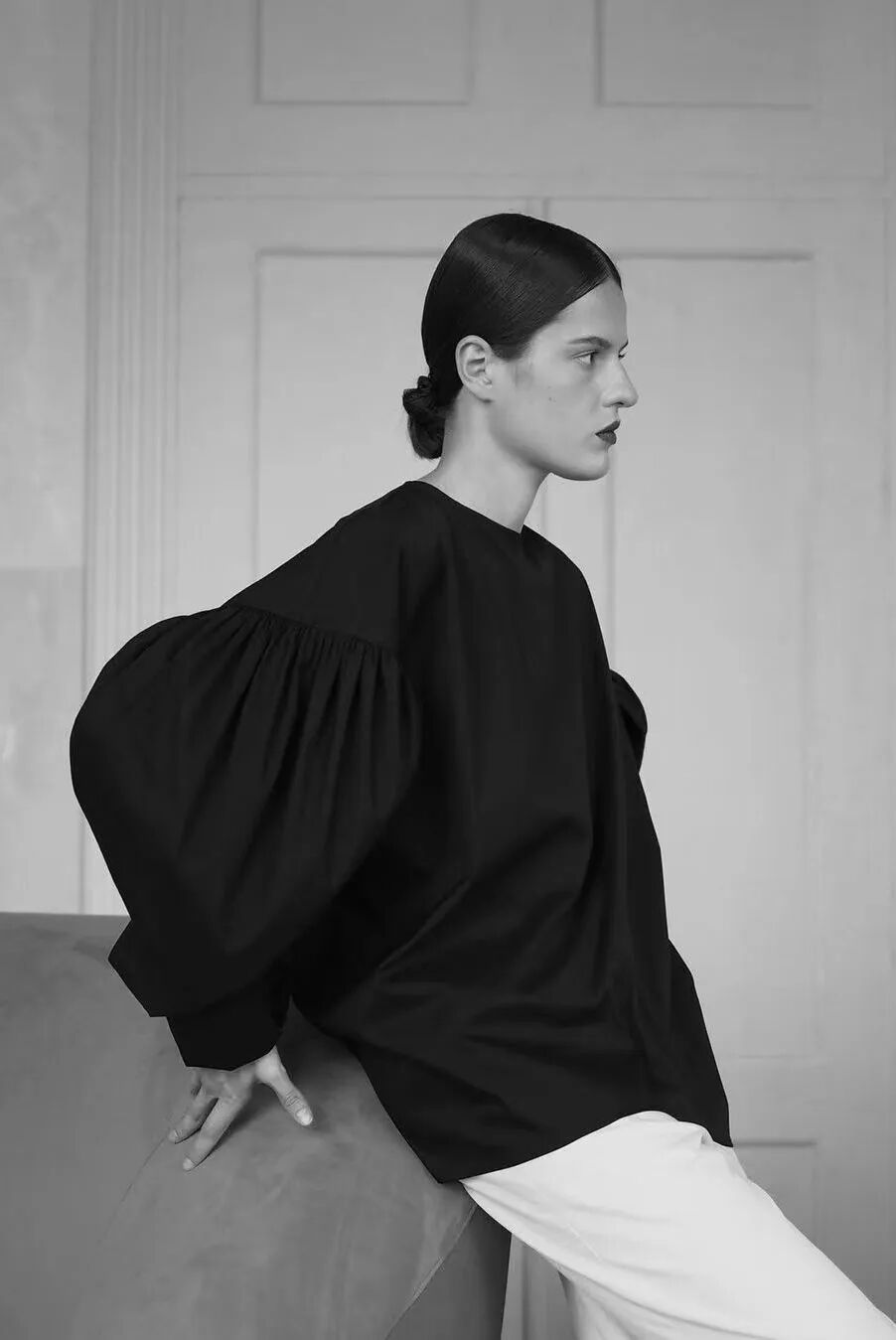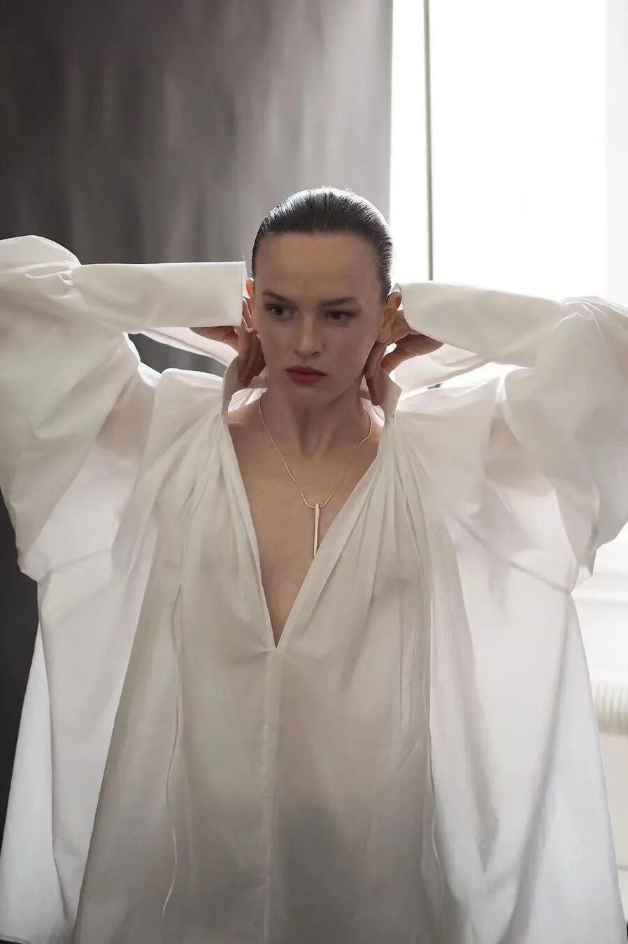 在品牌的官网上,不少能看得到这一对设计师夫妻的着装搭配,呼之欲出的极简廓形和克制的色彩让人根本挪不开视线。而这位来自圣彼得堡的Ксения Логинова也是在从小耳濡目染了时尚后,才决定成为一名时装设计师,在2019年与她的丈夫Анатолий一拍即合,携手成立了这个年轻的家族式品牌。除了洞察人心的品牌理念,在设计上也是摒弃了传统极简的生硬,在细微之处的设计下勾勒出衣着本身的线条和女性的韵味,结合着一种石膏质感,每一处都旨在不束缚女性的身体,兼具摩登和优雅。