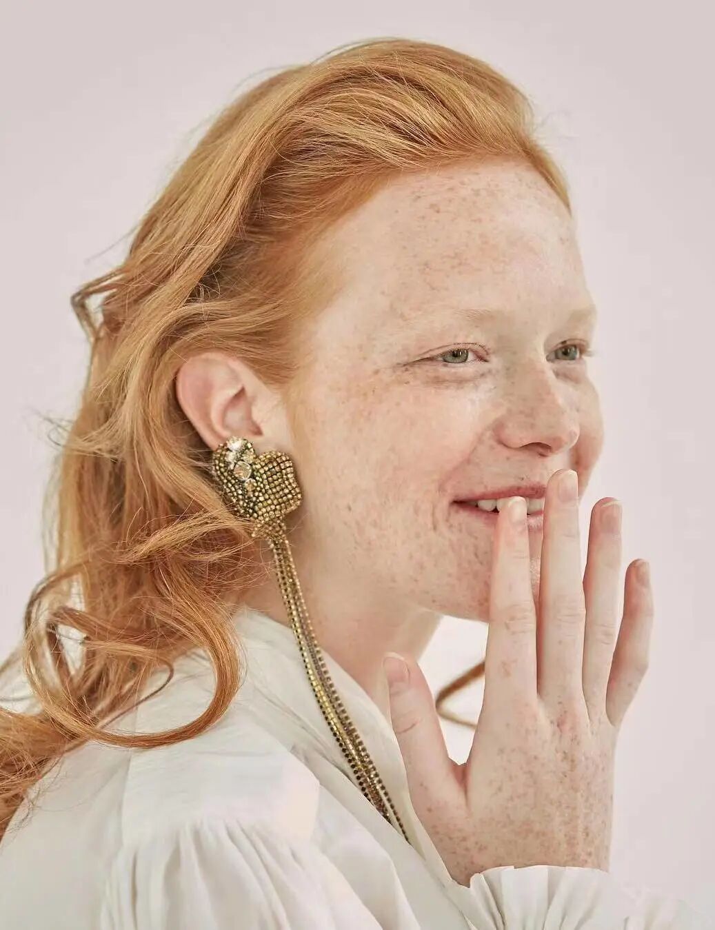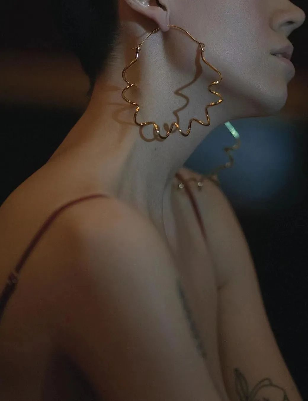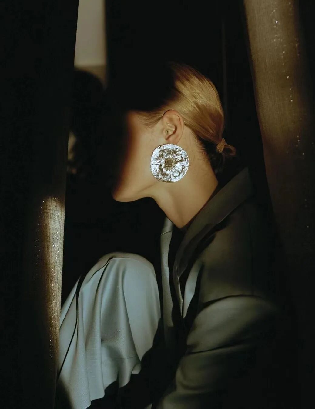 Olesya秉承一贯的色彩主义,也将其注入进柔软的非常规西装、丝质棉质长裙和艺术配饰之中。穿上Lesyanebo衣服的女人,好像总能令人产生一种错觉,她们上一秒还在老旧的列车里读报,下一秒就会在列车到站时下车奔跑在莫斯科的街头,驾着一部同样艳丽色彩的中古汽车驰骋在荒芜质朴的原野中去。不仅让品牌整体都笼罩在一股电影的氛围之中,它更是经常汲取来自老电影和歌曲、自然的灵感。硕大且极富张力的形状融入植物、几何的轮廓,绽放在耳垂和颈间,好像总是被用来形容春夏的勃勃生机应该就是这样了。连同近两年被各路时尚icon们青睐的“俄式大妈头巾”Babushka,也一并出现在了品牌日常的look搭配中,让人仿佛一秒就能穿越回莫斯科的街头。
