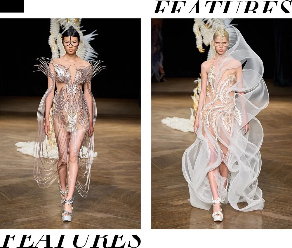 其实这项技术在时尚界早已不算新鲜,被称为时尚界“首席科学家”的艾里斯·范·荷本(Iris Van Herpen)在2009年开始就将目光投向3D打印技术,将时尚与建筑、艺术、科学相结合,创造出我们看到的这些超越于普通的高定所能达到的视觉张力,在她手中的衣服栩栩如生,让静止的服装呈现出动态的效果,仿佛像有着生命力一般。