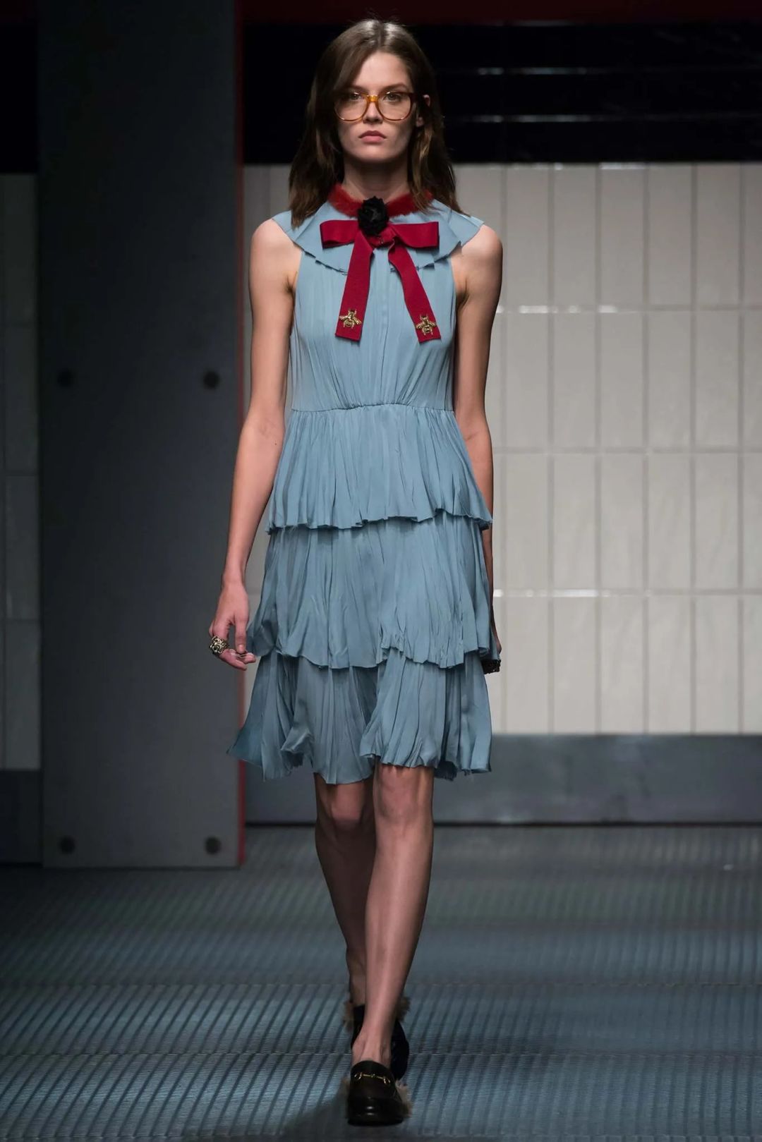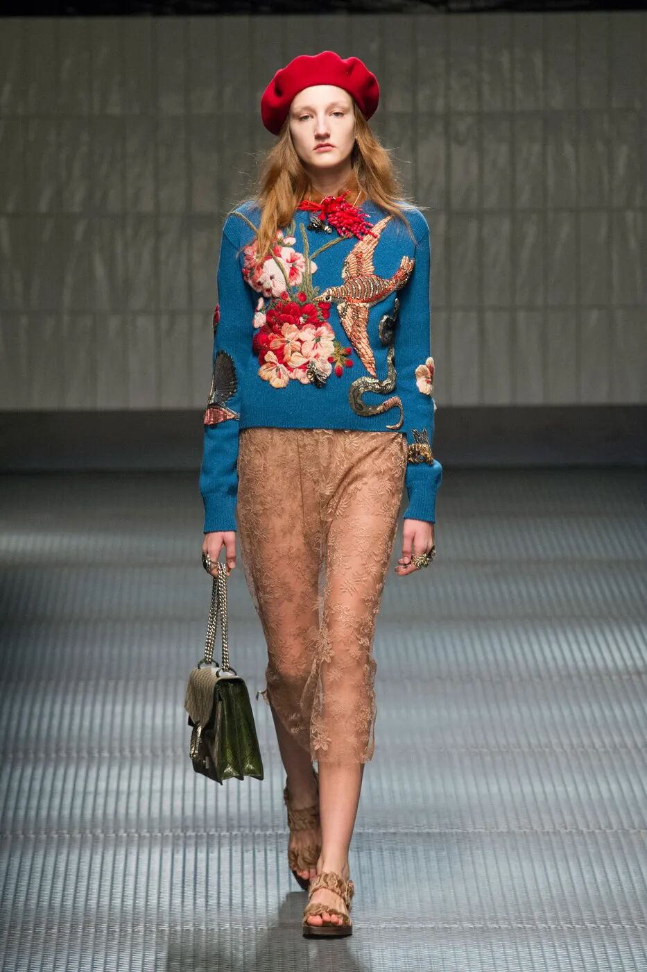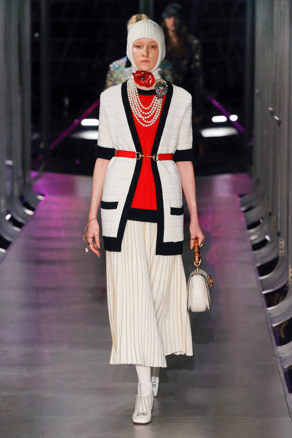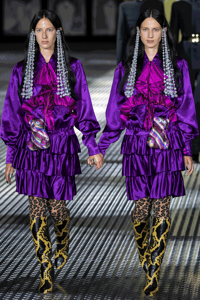 在米开理眼里,现代就是过去的世界,现代性就是用一种传统的方式去看待未来。于是,他用设计将人带入怀旧的语境,也通向未来的浪漫。如果说 2015 年 Alessandro Michele 刚上任时,人们还对浪漫文艺的 Geek Chic 持观望态度,那么频出的爆款则说明了,这种亚文化在他手下走向主流的过程。