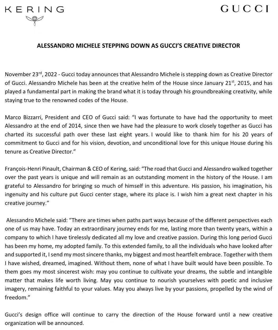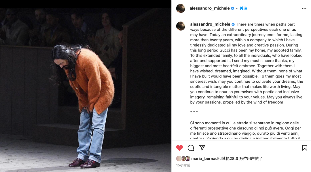 GUCCI创作总监离职,一场美丽的狂野冒险谢幕了