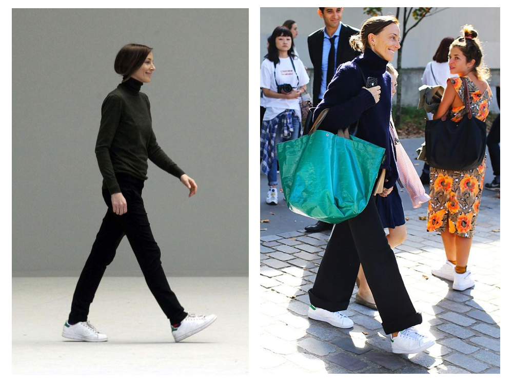 Stan Smith:这算得上是她职业生涯中“不务正业”的一笔,虽然一直在时装圈指点江山,但生活里的她穿衣风格却十分简约:高领毛衣、宽松的黑色长裤和一双干净利落的白色运动鞋。她的“偏爱”甚至说服了眼光挑剔的时尚杂志编辑们,让Stan Smith运动鞋从各种精致闪耀的细高跟鞋中分得杂志版面。