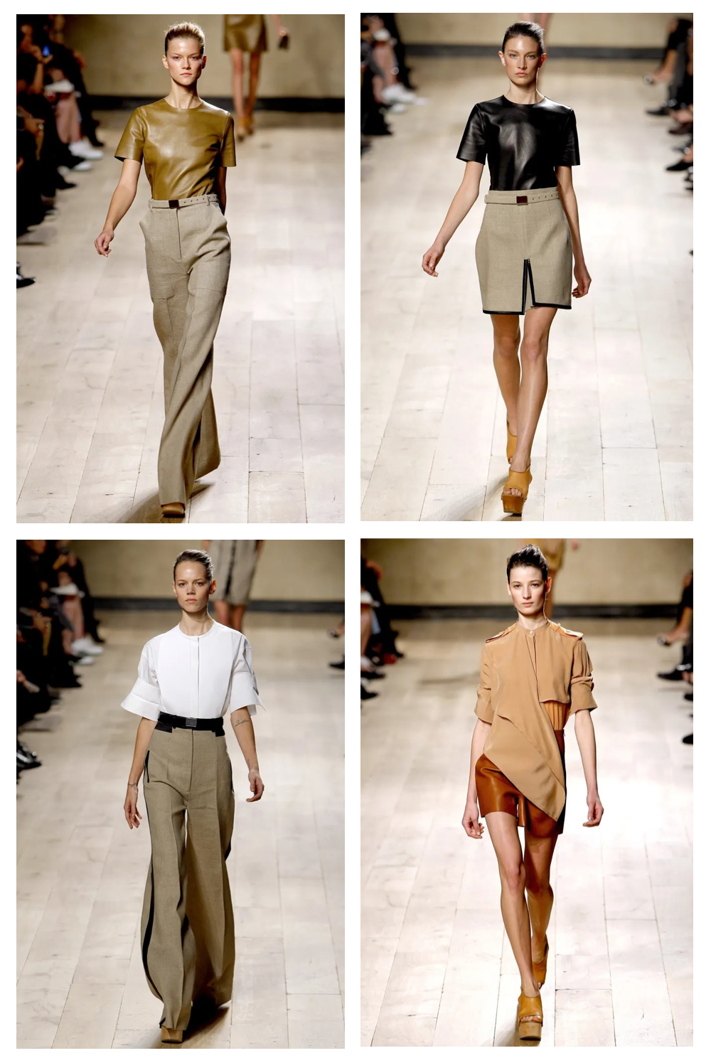 2010年春夏是作为Céline创意总监的第一个秀场,也大致铺陈了她之后极简当道的风格:皮制T-shirt、一丝累赘也没有的宽口裤。“对我来说,专注于衣服本身的创意比追求太多潮流要好。”