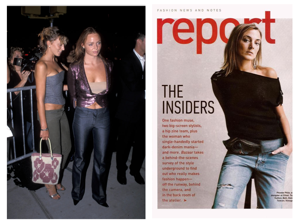 1999年,Phoebe与Stella McCartney出席Chloé纽约店的开幕式,两人合照记录了Phoebe罕见的Y2K风格造型,穿着紧身胸衣和低腰裤的Phoebe还是一副青涩的面孔。2000年还是Stella McCartney设计助理的Phoebe出现在Harper's BAZAAR,腰部的Vintage腰带和牛仔裤,颇为桀骜清冷。