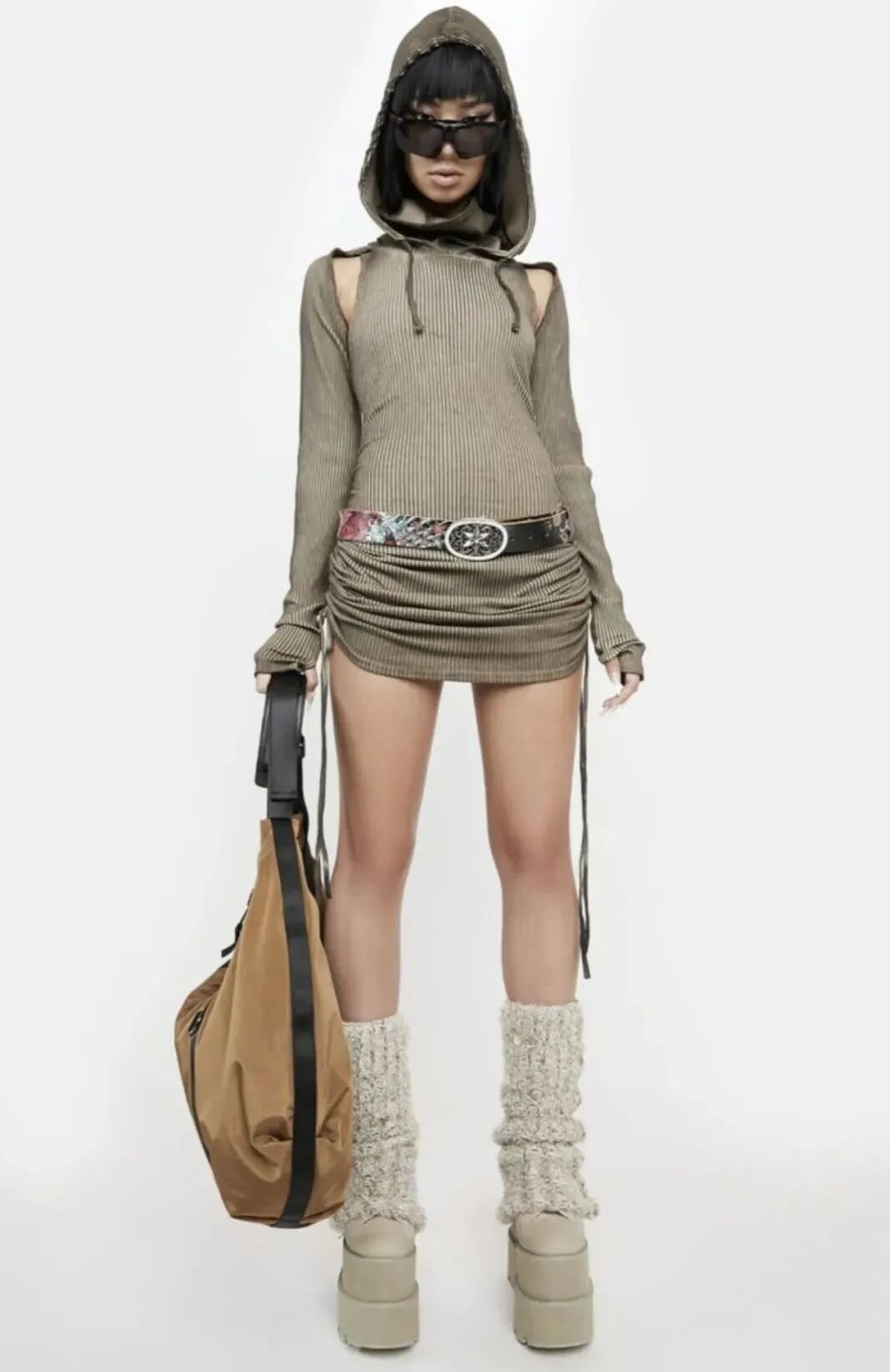 除此之外,多口袋设计也是今年非常火的时尚元素,被Bella运用到了日常穿搭中,打造出了一种行走在孤漠的Y2K辣妹的既视感。