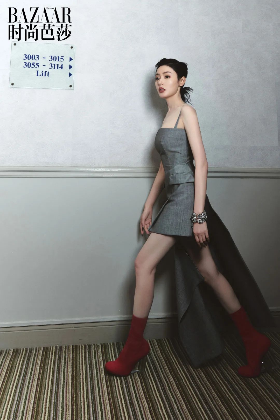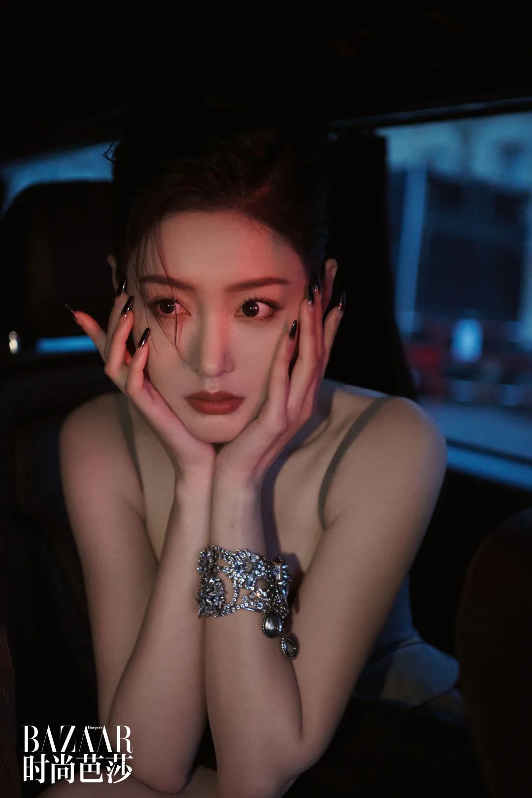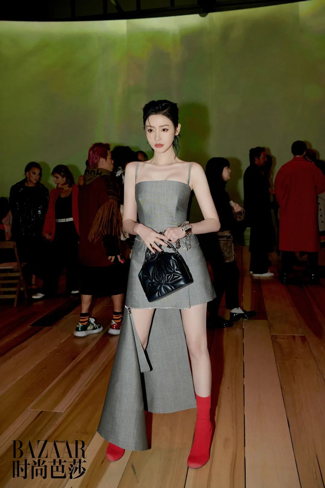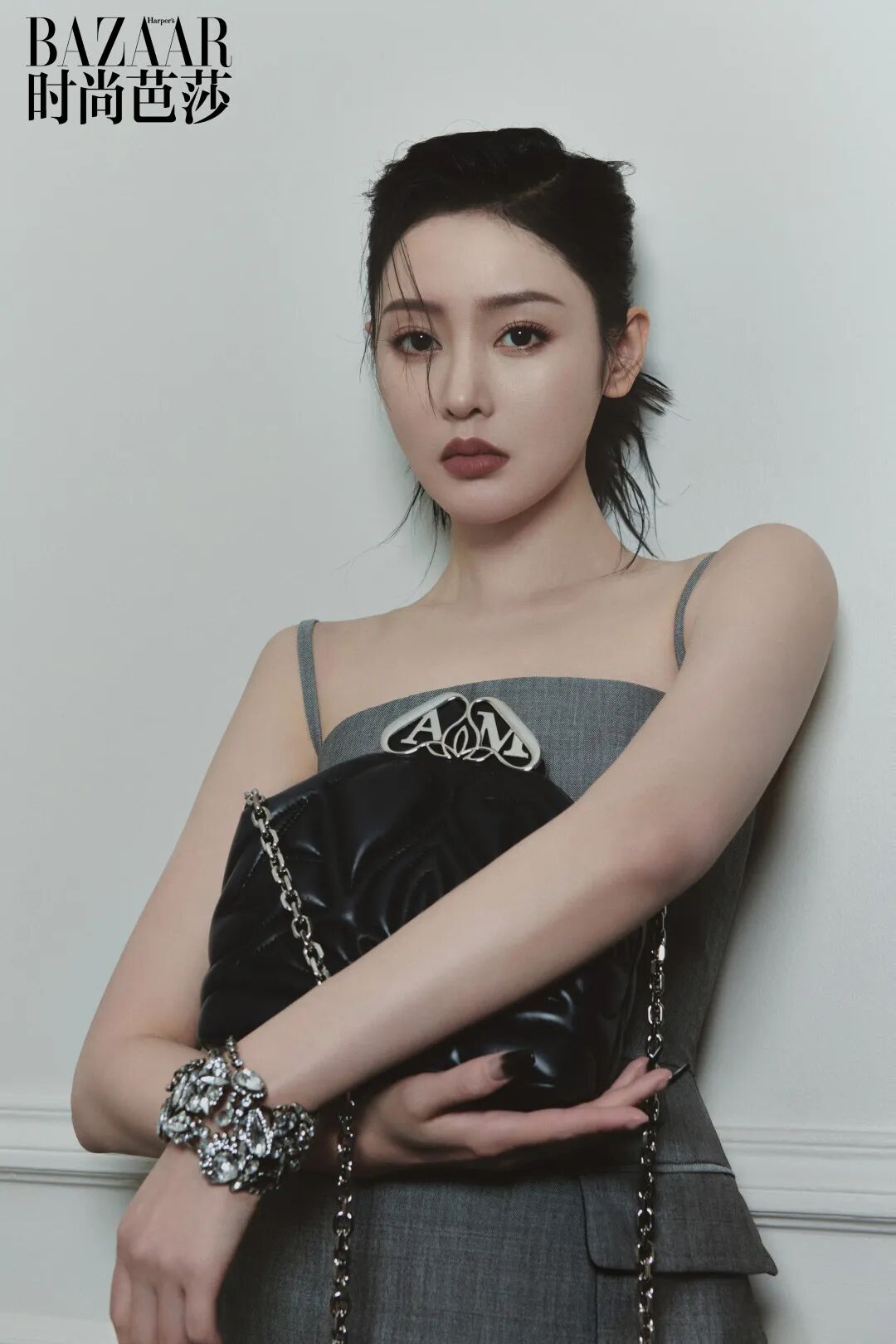 露肩茧形衣袖衬衫及紧身喇叭裤、厚底踝靴、The Jewelled Hobo迷你指环包、黑色皮革宽腰带及复古银色金属首饰均来自Alexander McQueen2023早春女装系列。褪去演员身份,日常生活中的张天爱,自在随性,洒脱笃定。上身Alexander McQueen 2023早春系列,焕新春日生机,注入造型活力。落肩褶皱夹克、开衩铅笔半身裙、厚底及膝靴、The Jewelled Hobo迷你指环包、Spike Studs太阳眼镜及复古银色金属首饰均来自Alexander McQueen 2023早春女装系列。落肩褶皱夹克与开衩铅笔半身裙,动感摩登中透露克制的理性;搭配厚底及膝靴,黄金比例,凹造型利器。