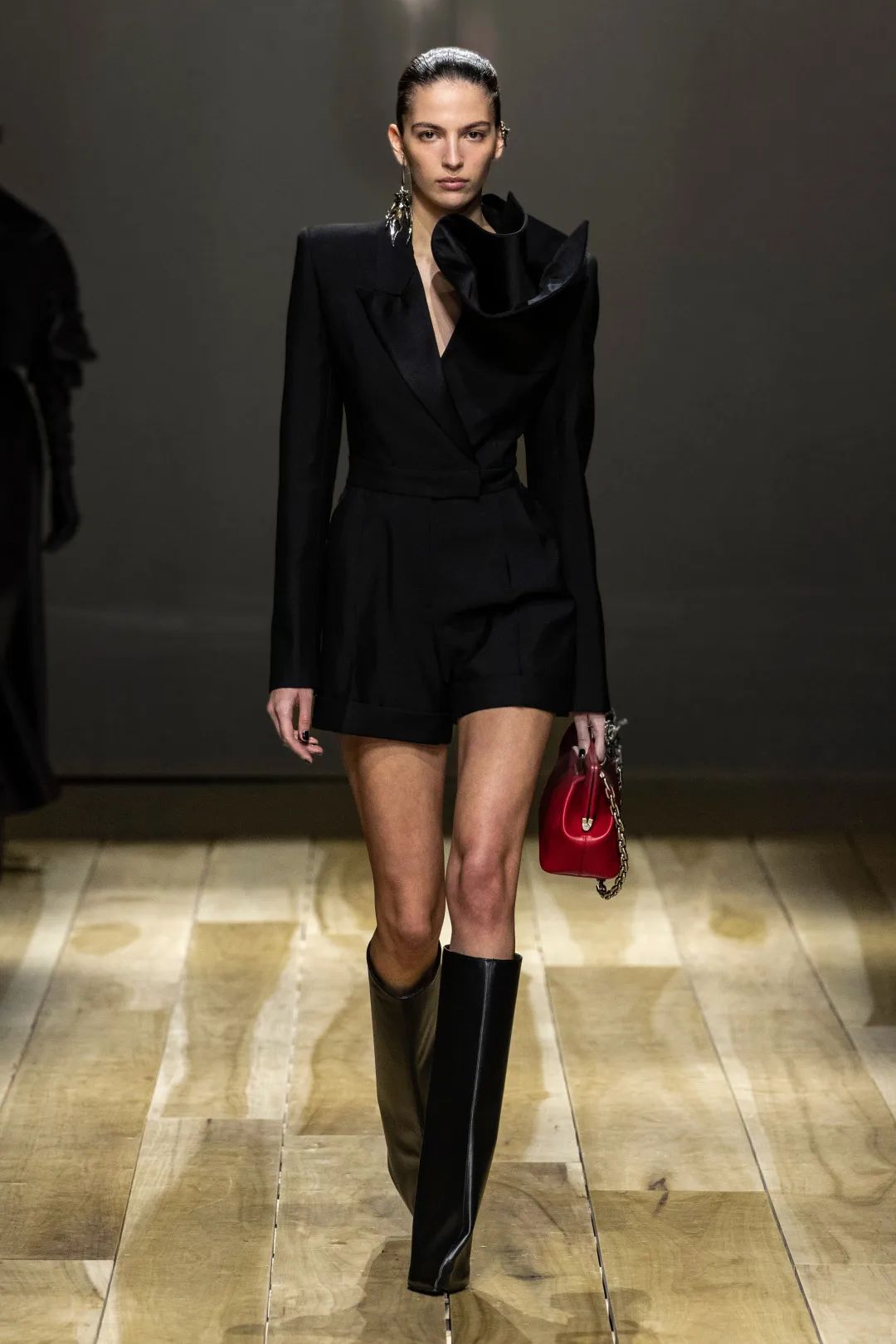 “Juxtaposition——融汇并置”是Alexander McQueen永恒的叙事主题。本次秋冬系列,以探索人体构造、服装解构、花卉形态为灵感,聚焦服装本身,通过精湛的剪裁与工艺,完美凸显比例与廓形,传递品牌风格。浪漫绮丽的礼服,如银河般闪耀的熠熠星光;挺括西装外套、解构机车皮裙,绝妙的廓形将柔美与力量并存的女性之美精准呈现。此次大秀,兰花元素贯穿始终。兰花以其罕见的培植形态呈现,肆意生长,极富适应性。以其解构图形呈现在不同面料之上,尽显绮丽旖旎,神秘美丽。通过精确的廓形与剪裁重塑轮廓线条,在风格和创意上实现合而不同。颠覆女性和男性着装之间的界限及性别规范,传达出女性干练、利落的一面,重新定义时尚美学。旖旎风光唤醒身体里的灵感因子,镜头另一边,张天爱漫步3月的巴黎街头。