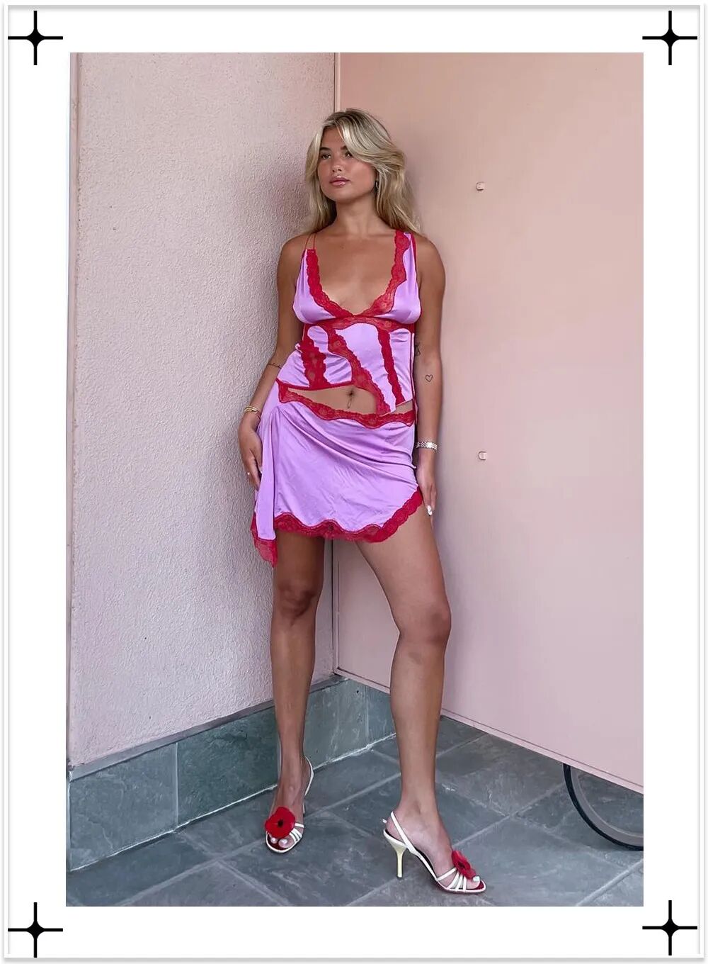 蕾丝和缎面都是极度女性化的元素,两者相加带来属于千禧年代的浪漫。蕾丝缎面slip dress带着暧昧和青春气息的性感,用最轻薄的面料释放夏日的闷热。