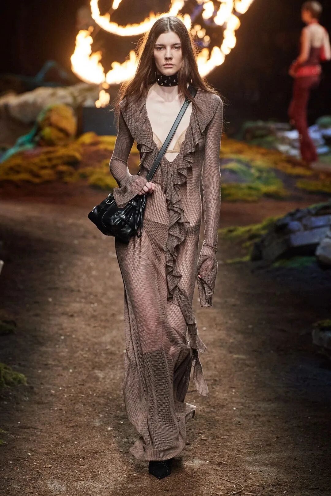 从刚刚结束的2023秋冬时装周看来,Y2K依然是2023年的大势。大量透视元素的出现、浪漫的千禧年荷叶边吊带裙以及低腰风潮的持续回暖,都预示着Y2K将会延伸出更多的风格。设计师们将千禧元素结合当下时装语境,让我们看到了更有趣的表达: