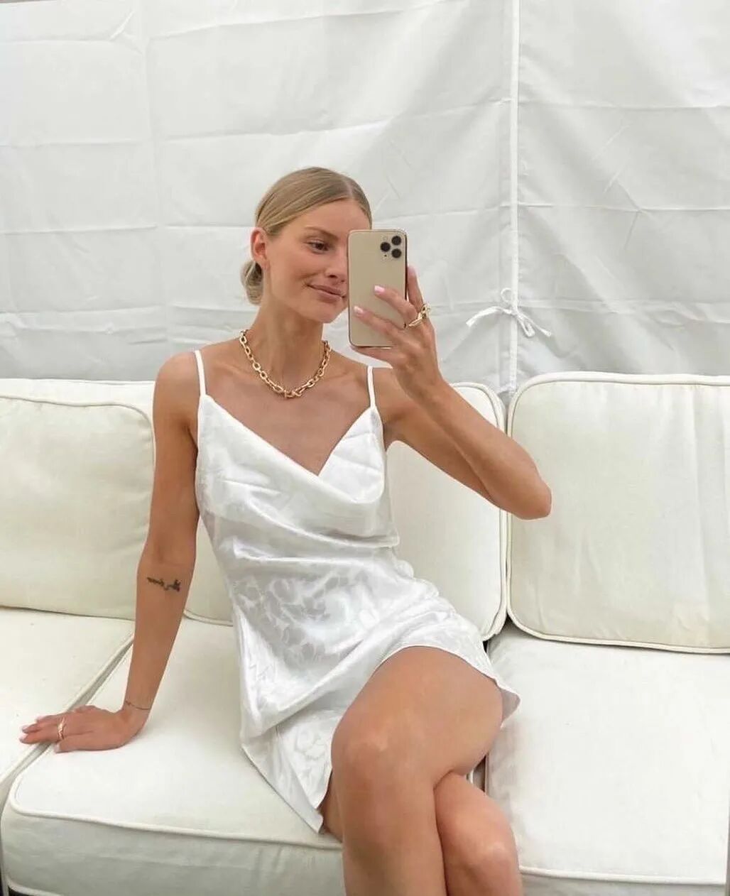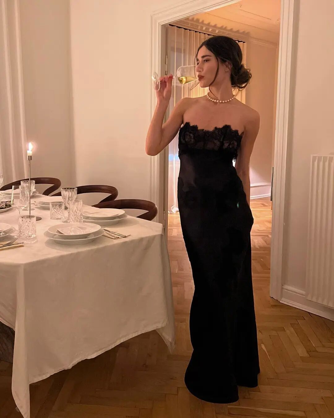 时尚博主Lida也非常会拿捏这种细节美感,一如上身知性的蕾丝抹胸裙时,只是简单点缀珍珠项链,就足以凸显出身线和品味。
