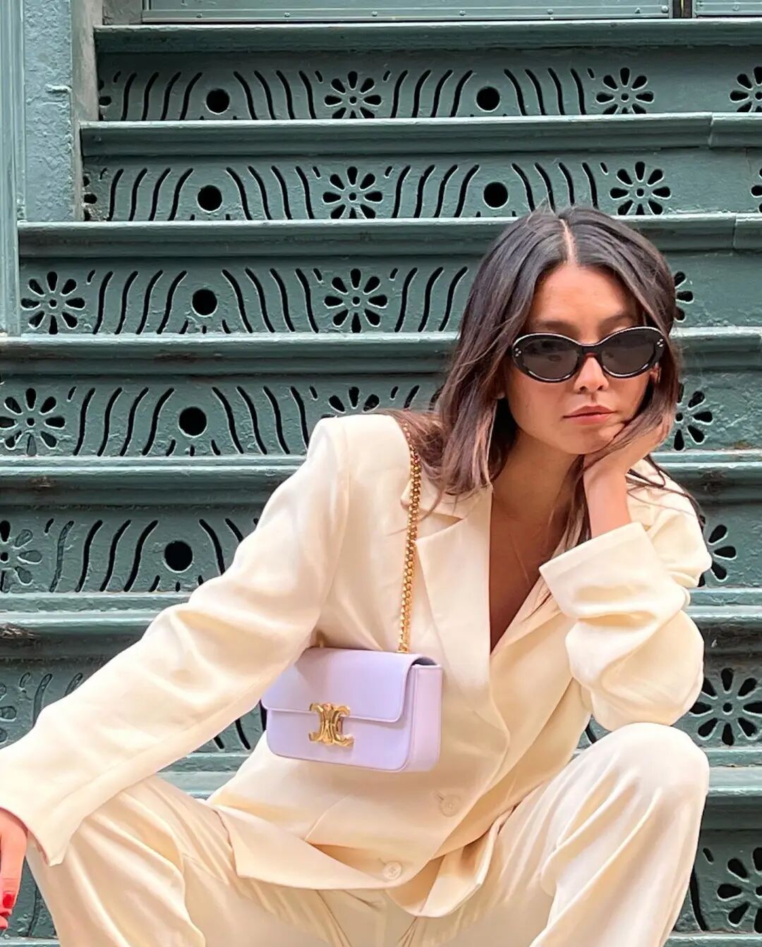 与此同时她还非常痴迷套装,利落上身,再在鞋包配饰上多费心思,便能打造难以复刻的时髦态度。