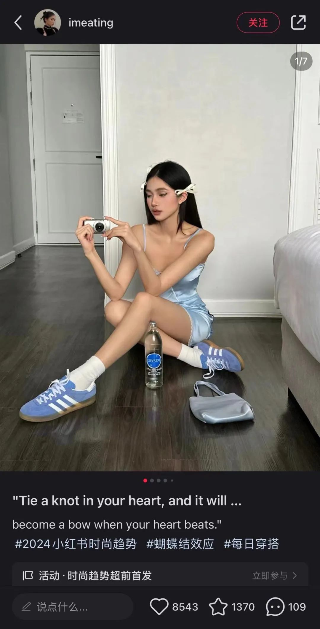 春夏季的流行趋势总是绕不开对色彩与设计细节的探索,今年显然不例外。小红书上博主们也已经捕捉到了这些时尚圈“new look”,带着他们的独到见解和风格再次“勇闯时尚圈”! 图源小红书 @吕颖Ivy @阿里北杯 想玩转时尚圈?以下三个元素绝对是高赞TOP的预备役:“蝴蝶结”“裙裤叠穿”“红色”。 图源小红书 @Skiko小希子 不过,大众对于“它们”貌似都存在着刻板印象:蝴蝶结曾几何时已经成为“土气腻味”的代名词 裙裤叠穿?是“拖泥带水”还是叠出时髦? “拜托,红色只有妈妈辈会喜欢吧!” 这些“负面新闻”满满的元素真的能重新占领热点高地?今天就让我们重新“审判”这些时尚圈正在进行时的热搜吧~ 延续上一年的流行元素,蝴蝶结将会在今年继续大放异彩。蝴蝶结早已不再局限于传统的甜美与女性化表达,通过丰富的设计运用和材料选择,展现出了更广泛的风格范围。 服装上的蝴蝶结元素运用变得更加大胆,也不局限于大小和形状。尤其是在细节上的巧妙运用,蝴蝶结能让整体造型显得更有层次感和立体感。 图源小红书 @妤Yuki 一个超大尺寸的蝴蝶结不仅能使造型立体感倍增,也是提升整体look吸睛度的”爆改“神器,可爱性感与个性的碰撞结合。拜托!小红书爆款笔记这不就来了? 部分图源小红书 @阿里北杯 然而,当这些蝴蝶结被装饰在了背部,不仅增添了优雅而神秘的氛围,还巧妙地融合了柔和的女性元素。 当然!蝴蝶结的排列方式也大有讲究,不论是整齐还是略显凌乱,都能为整体造型增添一份独特的吸引力,提升穿搭的精细度。 轮廓清晰的蝴蝶结作为造型的亮点,其在衣服的褶皱中自由绽放,如同春日里万物复苏的景象,展现着不愿被界定的个性。 丝带编织的蝴蝶结更是在发饰中发挥了极致的浪漫,与此刻占据时尚圈C位的“Balletcore”风格相得益彰,既有复古的韵味又不失甜美。 不过提起“Balletcore”那就不得不提到同为“蝴蝶结时尚推广者”的Jennie。无论是舞台造型还是日常穿搭都展示了对蝴蝶结元素的精湛运用。蝴蝶结的魅力在于它的多变性和灵活性,既可以是造型中的一个细节亮点,也可以成为整体造型的主导元素。 Jennie时常通过蝴蝶结作为造型中的“小巧思”展现独有的性感与俏皮气质,无论是衣着还是发饰,都能与其它元素完美融合,以多种形态展现了它的时尚能量。 蝴蝶结也在2024年的各大时装周中刷足了存在感,成为众多品牌秀场上的highlight。 不过要说话题度,Prada绝对要第一个聊。本季,设计师们将蝴蝶结巧妙地融入到各种服装中,无论是点缀在连衣裙的肩膀、腰部,还是装饰在后背,都与服装上的其它元素如立体花朵装饰等相得益彰。 蝴蝶结的巧妙使用,不仅为服装增添了一份浪漫的韵味,也在视觉上增强了服装的层次感和立体感。 还有个不得不提的品牌就是Simone Rocha,它将蝴蝶结的浪漫精神发挥到了极致。在其24春夏的秀场上,蝴蝶结不仅是衣物的一部分,更像是穿梭于现实与梦幻之间的使者。 装饰在透视薄纱上的蝴蝶结,搭配立体花朵和水晶点缀。这些如瀑布般铺展的蝴蝶结装饰,松弛而又有廓形。 裙子+裤子?看似冲突而矛盾的叠穿搭配,“dress over pants”早已成为了这届互联网最in的穿衣法则! 最近裙裤叠搭的穿搭方式在时尚博主们主页的出现频率如“井喷式”爆发,用裙裤叠搭的方式为造型增加层次和氛围感早已是时尚圈“公开的秘密”。这种结合了裙装和裤装优点的穿法,简直就是苹果形身材的天菜。 探索裙裤组合的魅力,从挑选合适的裙装开始,无论追求韩式的随性还是法式的优雅。对于初试者来说,黑白配色是进入这一趋势的绝佳选择,不仅减少了搭配时的难度,还能带来极致的艺术性与高级感。 图源小红书 @Fil小白 衬衫长裙上身有着极好的修身效果,加上垂感阔腿长裤的平衡,长裙的弊端被衬衫的开衩设计中和,腰线拉高,提高层次感。衬衫与裤装不同材质的碰撞也带来了不一样的视觉体验。 春夏这个温度极速变化的季节里,也可以选择一件合适的外套进行叠搭。西装、卫衣或是大衣,不仅适应了季节的变换,还能通过露出裙摆的设计,增强层次感,同时显瘦又不显臃肿。 图源小红书 @吕颖Ivy 此外,绮丽的印花裙与喇叭裤的碰撞,创造出了全新的时尚火花。这种一繁一简的视觉效果,既能平衡印花裙的甜美,又不失裤装的随性,营造出随性又不失懒散风格的“爆文”穿搭。 女明星们也开始偏爱这种自在又不失个性的搭配,“dress over pants” ,既打破了裙装的单一甜美感,又赋予了整体造型一种随意而又微妙的反叛气息,完美地展现了独属于女性的柔美与坚韧。 不过要说近几年将裙裤叠穿公式重新带火的“功臣” Rosé绝对排得上号,暖橘色吊带裙与浅蓝色牛仔裤的组合拉开了“dress over pants”回归热搜话题的序幕,散发着法式的慵懒与性感。 另一组造型身穿蓝底白色碎花开衩裙,与蓝色牛仔裤的结合展现出独具个性且潮酷的风格。不同材质单品的碰撞不仅塑造出新潮而洒脱的时尚个性,同时也在一定程度上优化身体线条,使整体look在春夏季也不会显得笨重。 其实,裙裤叠穿早就在秀场上大展锋芒,Ashlyn在2023春夏系列中,以经典的黑白配色为基调,将这一穿搭方式推向了新的高度。 该系列中的裙裤叠穿通过精致的腰部设计,巧妙地在视觉上营造出上半身的柔美与下半身宽松廓形裤的对比感,黑白色调的碰撞更是让