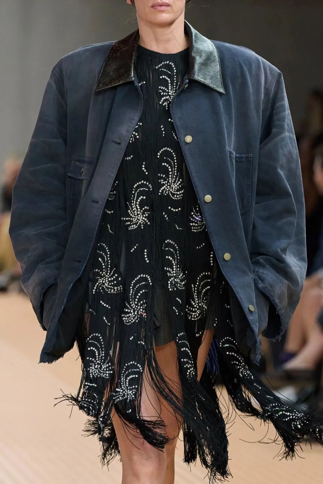 虽说麂皮多了些硬朗的意味,但流苏这一元素的出现却赋予了它更多的柔软与灵动。博主Leandra Medine Cohen穿得有趣味性占据了她搭配的绝大部分篇幅,她在流苏款麂皮夹克中,用小面积的红色点缀或者是亮片半裙来调和一下,就非常有腔调。