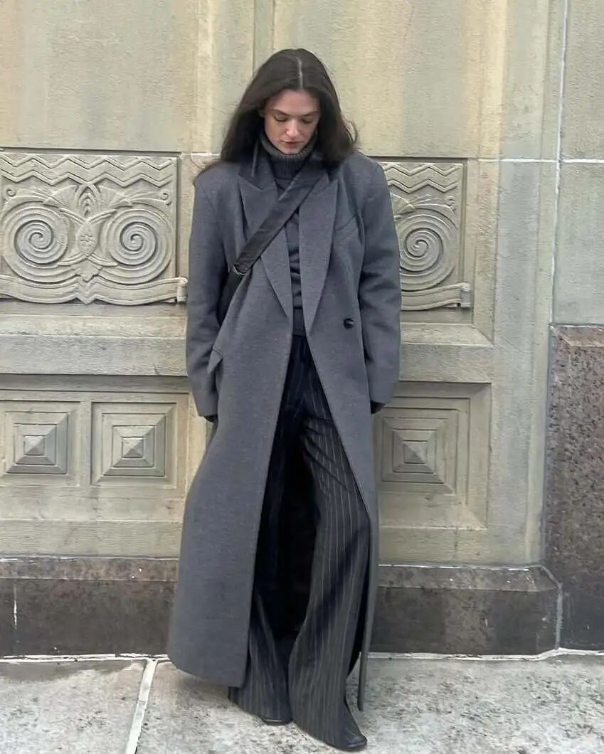 不得不说,当刷到高圆圆这张街拍的时候,是被她松弛的状态治愈到的。不少“英语人”最近喜欢把“Chillax”挂在嘴边,这个词是由“Chill”和“Relax”二者组合而成,表示一种放松下来的状态。时尚圈有人把“Chillax”又称为“慵懒慢人风”,正如高圆圆的这组造型,不用过多单品堆砌,便能渲染出一种自在随性,让你不自觉地被她所吸引。这种风格也十分适合当下——新的一年刚刚到来,我们是时候慢下来,一边将上一年的收获沉淀,一边疗愈自己的心情,随之更加轻松、宁静地再次出发。过去的一年中,“班味”这个词被反复提起,都市人两点一线的生活是被无数个匆忙的步伐所连起来,而“班味”的反义词大概就是Chillax。慢下来,此时穿衣也不必追求高效和干练,更重要的是自己是否舒适,以及享受都市生活中愉悦、惬意的一面。太过随意或是太过精致,都偏离了Chillax的本意。长长长长款的大衣搭配阔腿裤的组合将分寸拿捏得刚好,既完成了保暖的任务,又能以流畅的线条呈现出松弛,廓形带来的空间让活动不再受限,四两拨千斤地呈现优雅态度。阔腿裤可以说是为慵懒而生的单品,放在这个风格里再合适不过。不需要身材有多完美,它的搭配包容性很强,宽松的裤腿设计还可以随心所欲地加入保暖衣物。针织、毛呢等材质加重了阔腿裤中“Relax”的比例,模糊居家舒适和外出得体的边界,为身体消除一些紧绷的感受。针织半身裙也是一件“刚刚好”的单品,明明是精心装扮过的搭配,却有着出门前随手一套的“不经意”。一双舒适、好走的鞋当然也很重要(怒音!),运动鞋、乐福鞋,或是“怕冷选手”偏爱的雪地靴都可以与阔腿裤搭配起来,随时可以开启一场感受城市美好的漫步。这些轻松且时髦的单品组合在一起,连带着肢体行动也随之变得轻巧灵动,让人可以更加充分地享受下午茶、看展以及公园20分钟这些Chill时刻。我们常说穿衣是内心世界的外在体现,追求Chillax的风格,也是在追求一种内在的平静,希望在快节奏的生活中,关注到那些细微的美好瞬间。