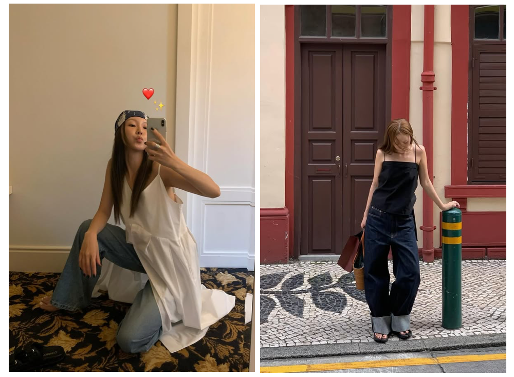 白背心也可以轻松驾驭街头潮流风,下身搭配一条宽松的复古牛仔裤,或是一条垂坠的白色阔腿长裤,背心的简洁与下装的宽松形成对比,整体造型松弛有度。