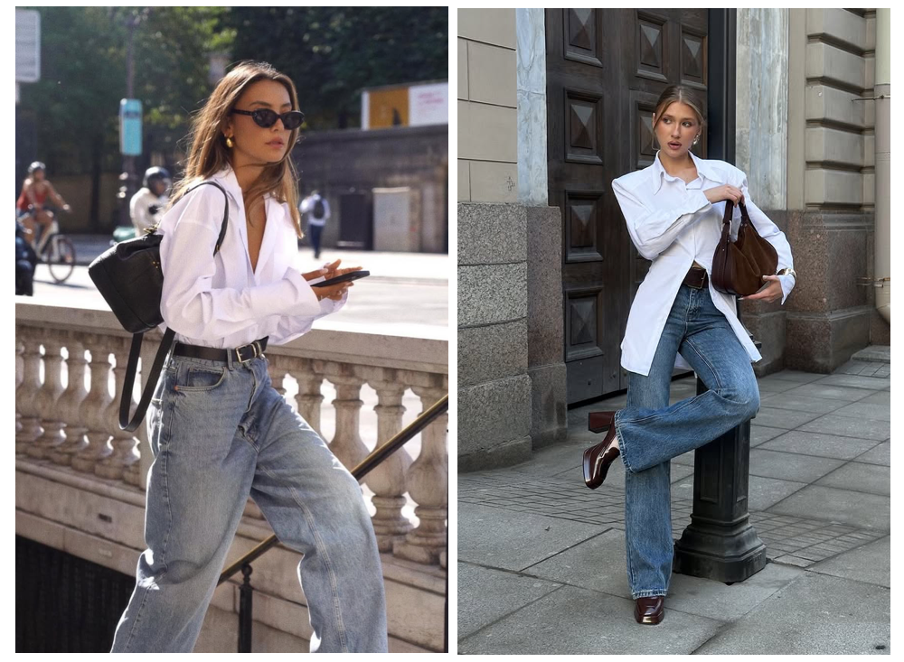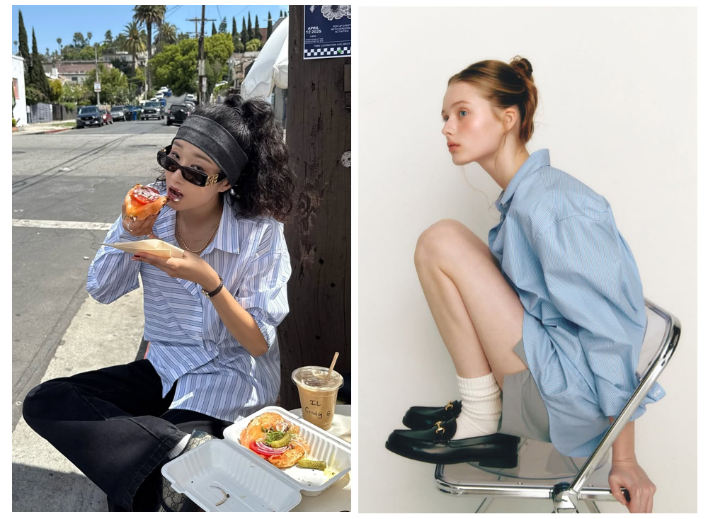 一件廓形V领白衬衫,轻松复刻20世纪80年代大女人的自信气质。衣领自然敞开形成锐利线条,无须过多配饰,仅靠白衬衫本身的建筑感剪裁,就能撑起强大气场。