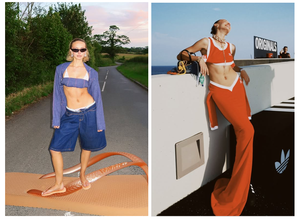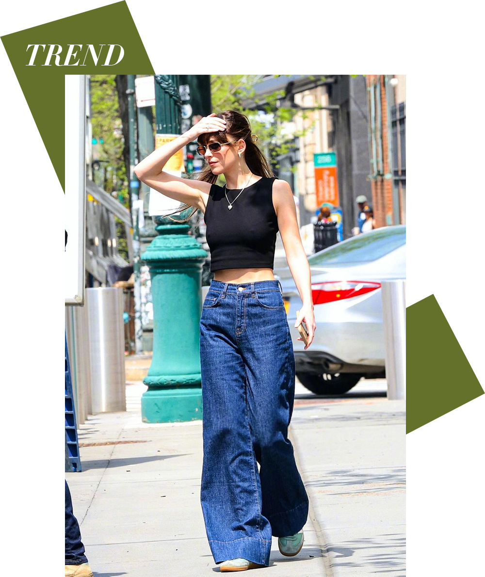 可以尝试大胆地露出腰部线条,能瞬间将造型的视觉张力定格在上半身,再搭配极具量感的下装,飘逸的拖地长半裙,或一条宽松挺括的短裤,强烈的上下对比,反而可以打造出充满力量感的时髦气场。