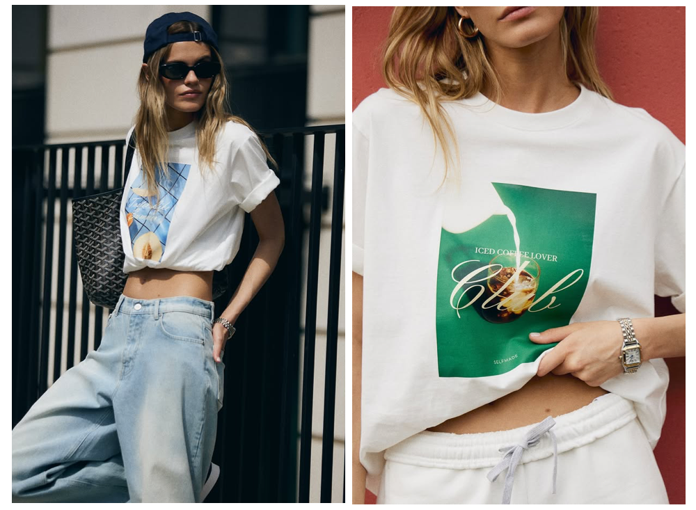 对于夏日衣橱必备的T恤,一个简单的“卷边”就能瞬间提升时髦度。将常规T恤的下摆随意地卷起一两折,露出小段腰部肌肤或内搭边缘,让造型有了重点和层次。