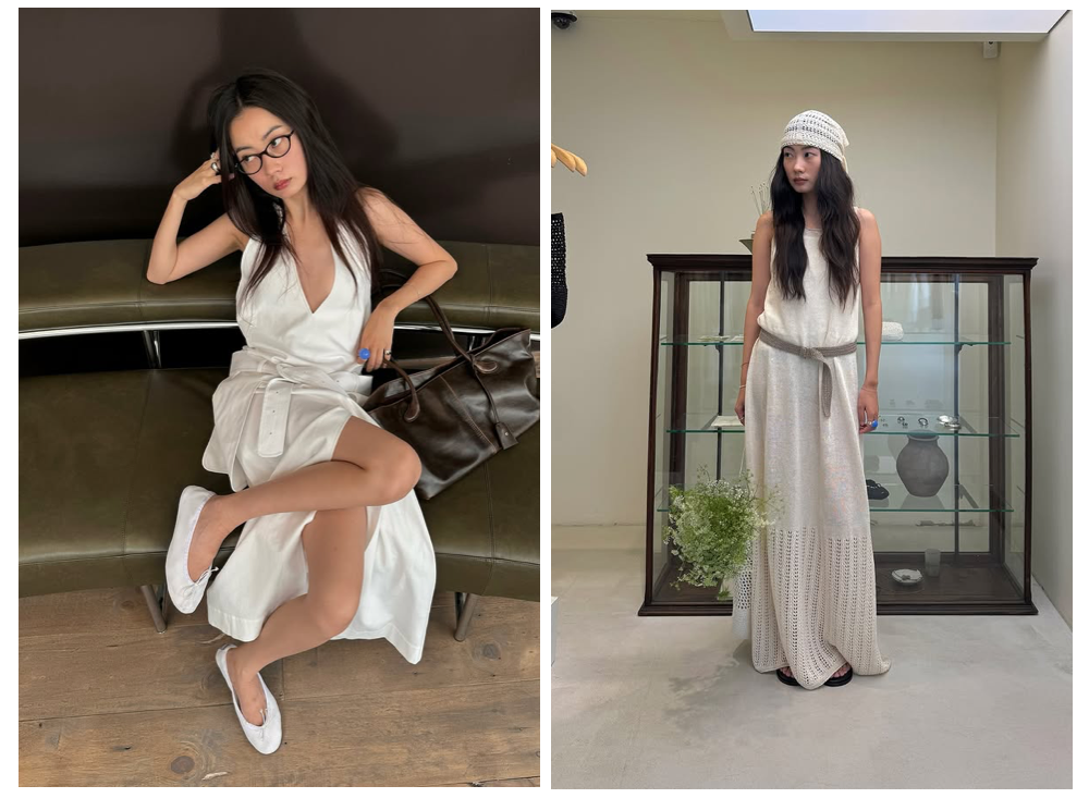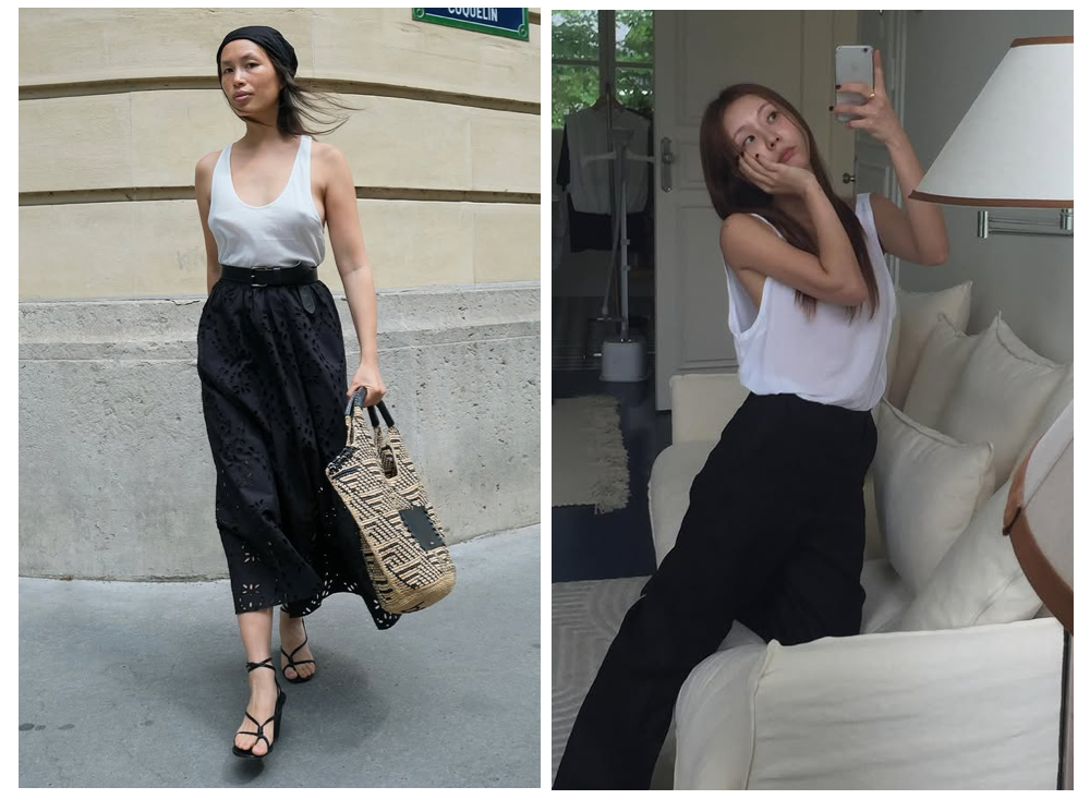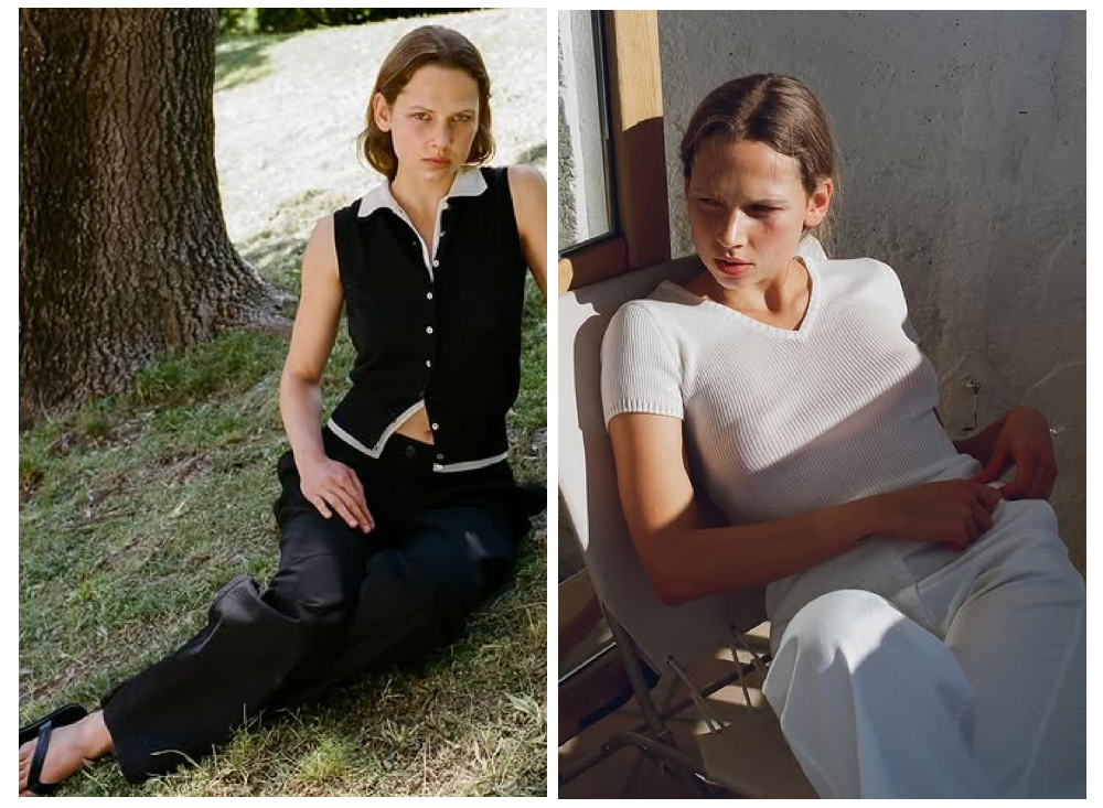 针织短袖和背心可以让慵懒与精致感并存。搭配平底凉鞋或尖头单鞋,整体造型既有呼吸感又不失重点和质感,也正是极简风追求的“不经意的时髦”。
