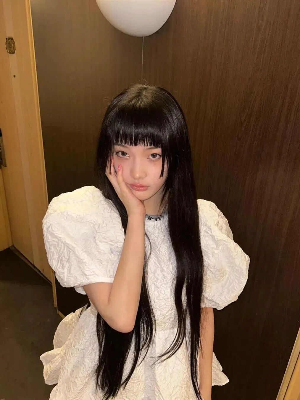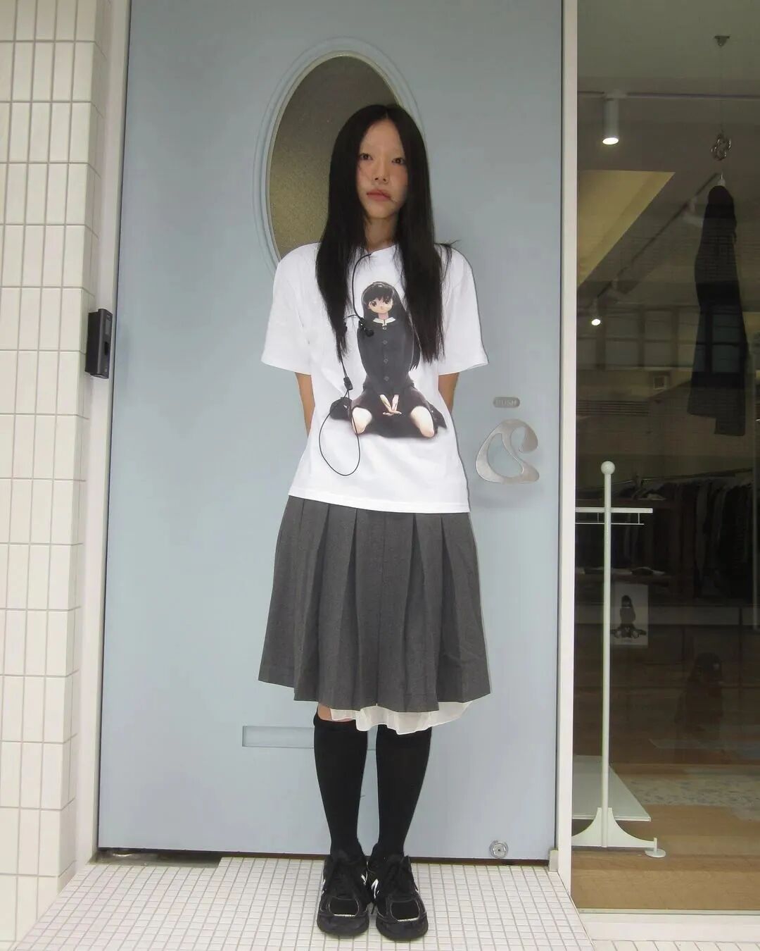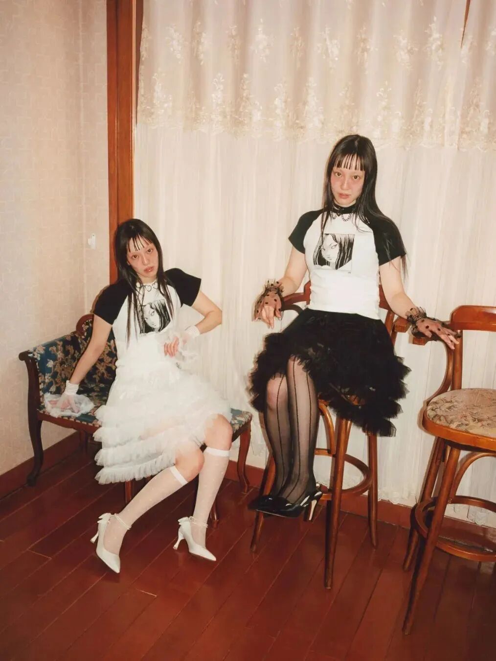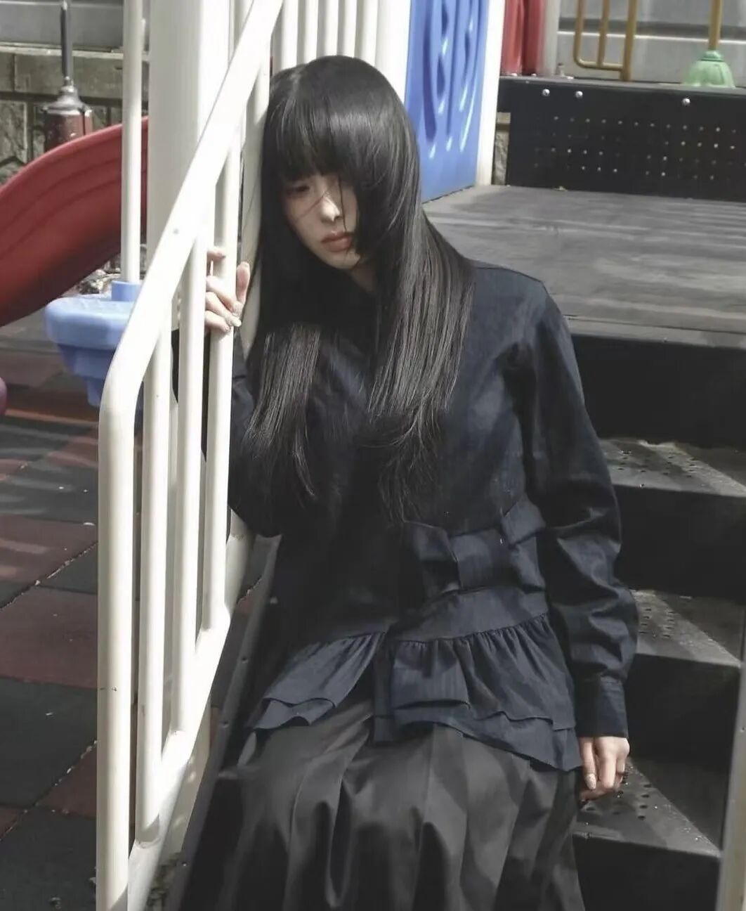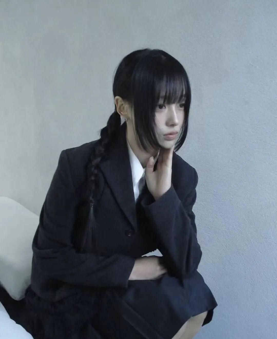 这种齐刘海+黑长直+黑白灰的日漫造型,被称为“新富江少女风”。在当下的韩国流行文化语境中,这股穿搭潮流正席卷从女团、博主到Z世代的社交平台,把“少女感”“危险感”“反叛美”完美融合。它从漫画走向现实,从虚拟视觉投射到具体服饰,成为2025年最令人迷恋的“异色少女风”。