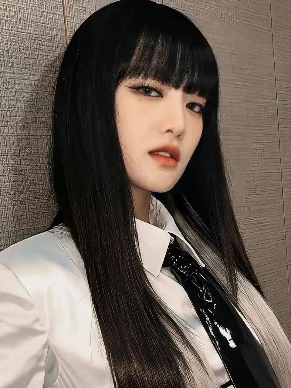 说到最早以人间富江形象出圈的女团成员,必须有(G)I-DLE的Minnie,她凭借独有的厌世脸,成为了韩娱甜酷恶女造型的典型代表。
