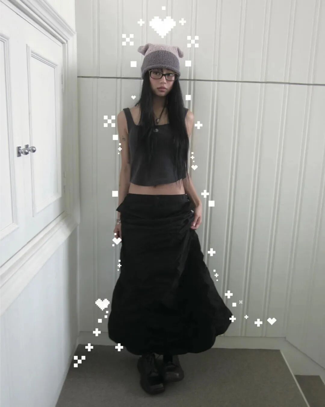 穿搭方面,这种风格融合了日式女高制服的甜美、韩系黑白灰的冷酷,还有一些Y2K 的复古未来感,形成了一种既甜美又个性的氛围。