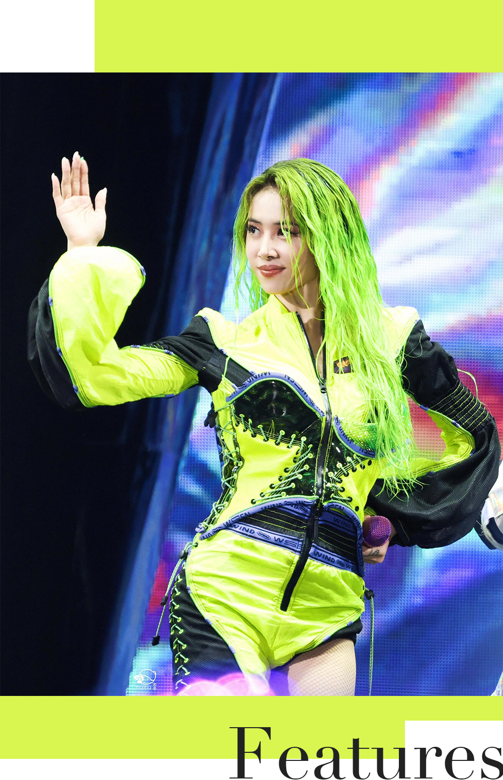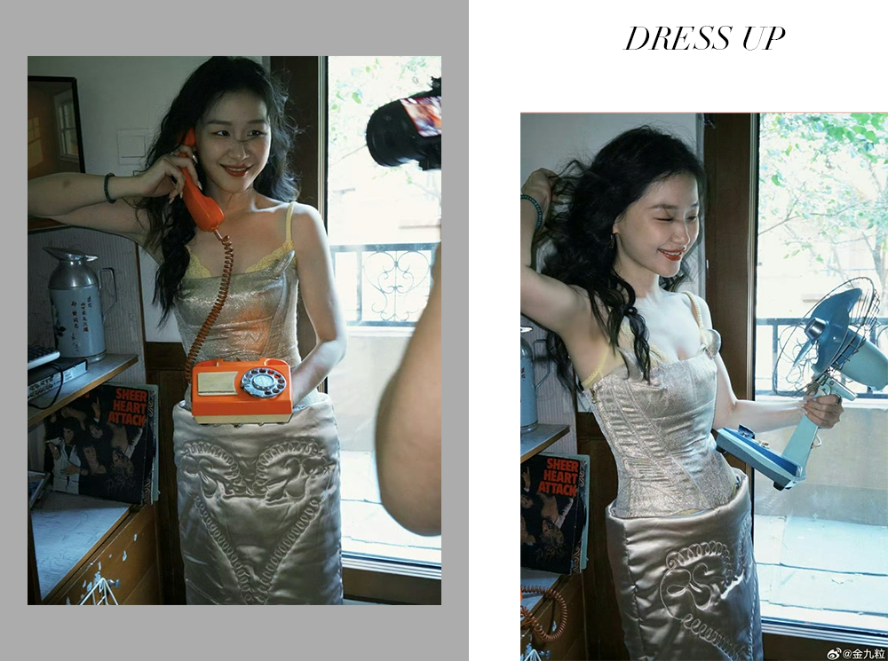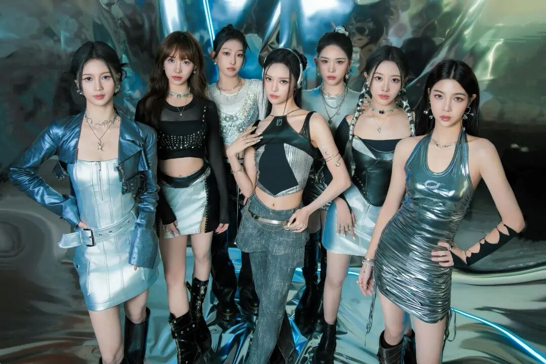 有“AI女团”之称的Aespa,以银、镭射紫、幻彩粉等金属感布料营造赛博未来感,搭配透明树脂配饰、露肤剪裁与色彩碰撞,把高饱和马卡龙色玩出赛博味。打破“未来=黑白灰”刻板印象,梦幻又前卫。