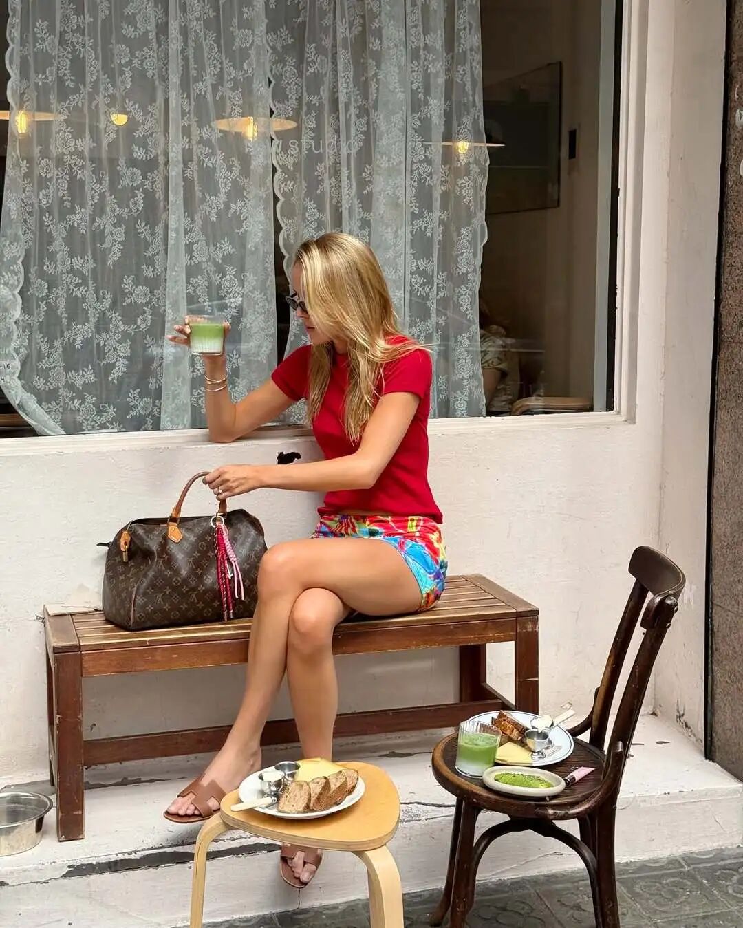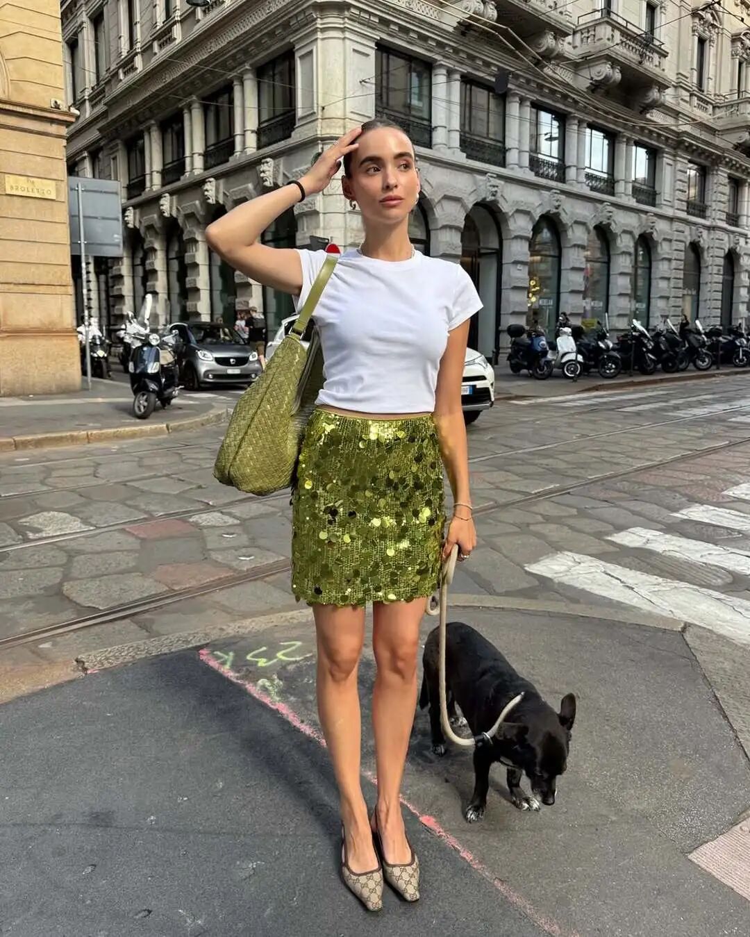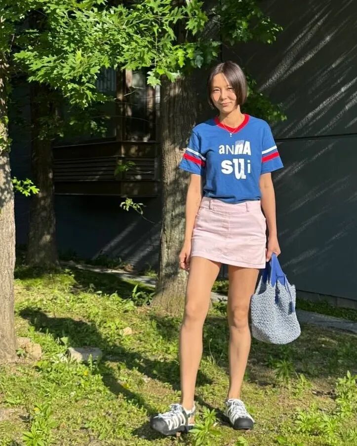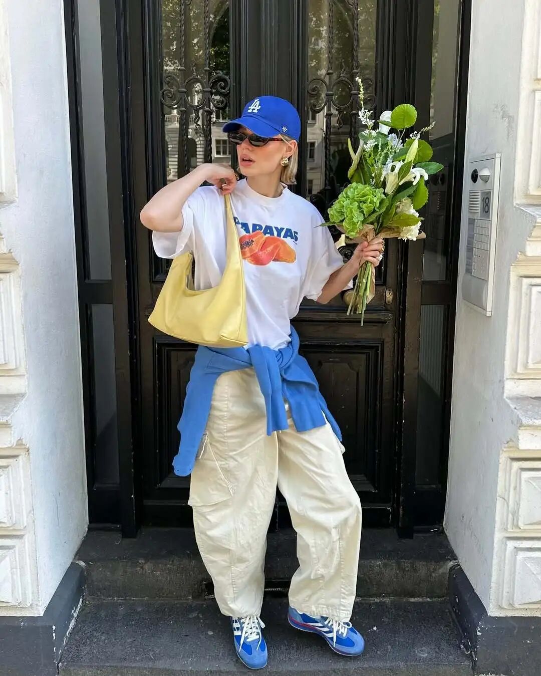 对于想要有点“突破”的时装玩家,可以尝试将亮色T恤与同色系但不同饱和度的单品相配。比如,一件很夏日风的牛油果绿色T恤,可以搭配粉色半身裙,焕发出蓬勃生命力。或是同色系的渐变搭配,创造出层次丰富的视觉效果,既统一又富有变化。