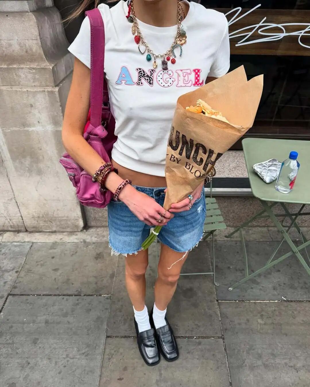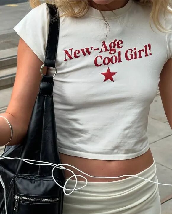 Slogan T恤曾在千禧年间十分流行,随着千禧风、Y3K风格的回归,这股潮流也将这种T恤单品带了回来。衣服上看似随意的话语,承载着穿着者内心世界的外化表达。
