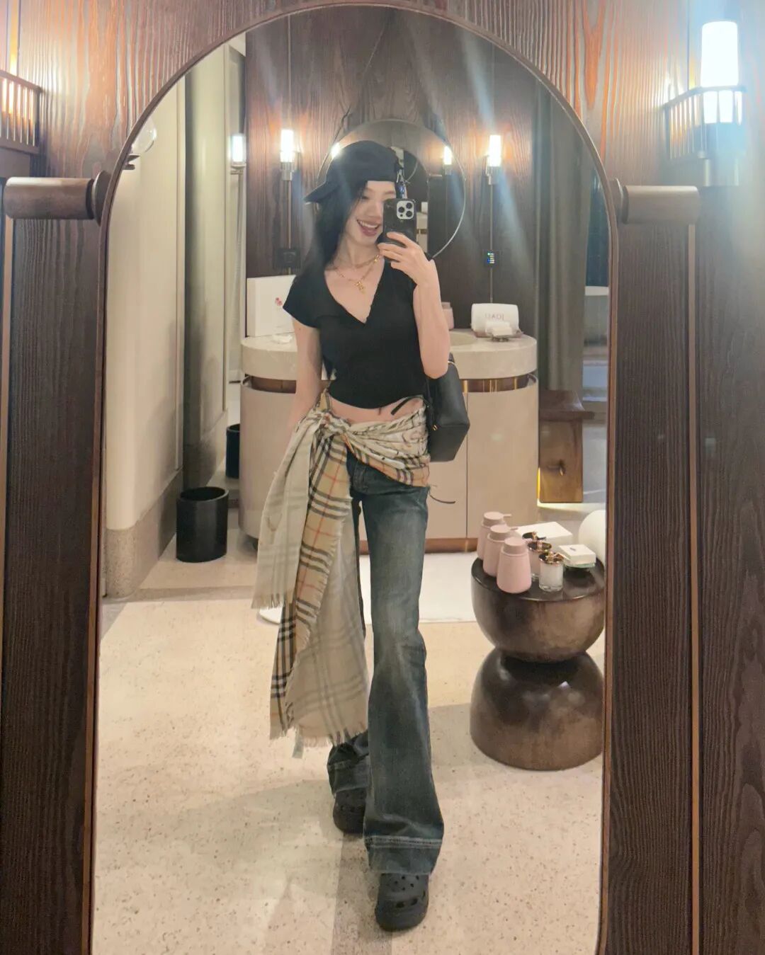 不管是综艺穿搭,还是日常私服,似乎不管什么造型到了她身上,不是 “单品够不够时髦”,而是衣服跟着她的状态走的节奏。有时候元气满满,衣服也显得格外有精神;偶尔带点慵懒,衣服也透着股自在。