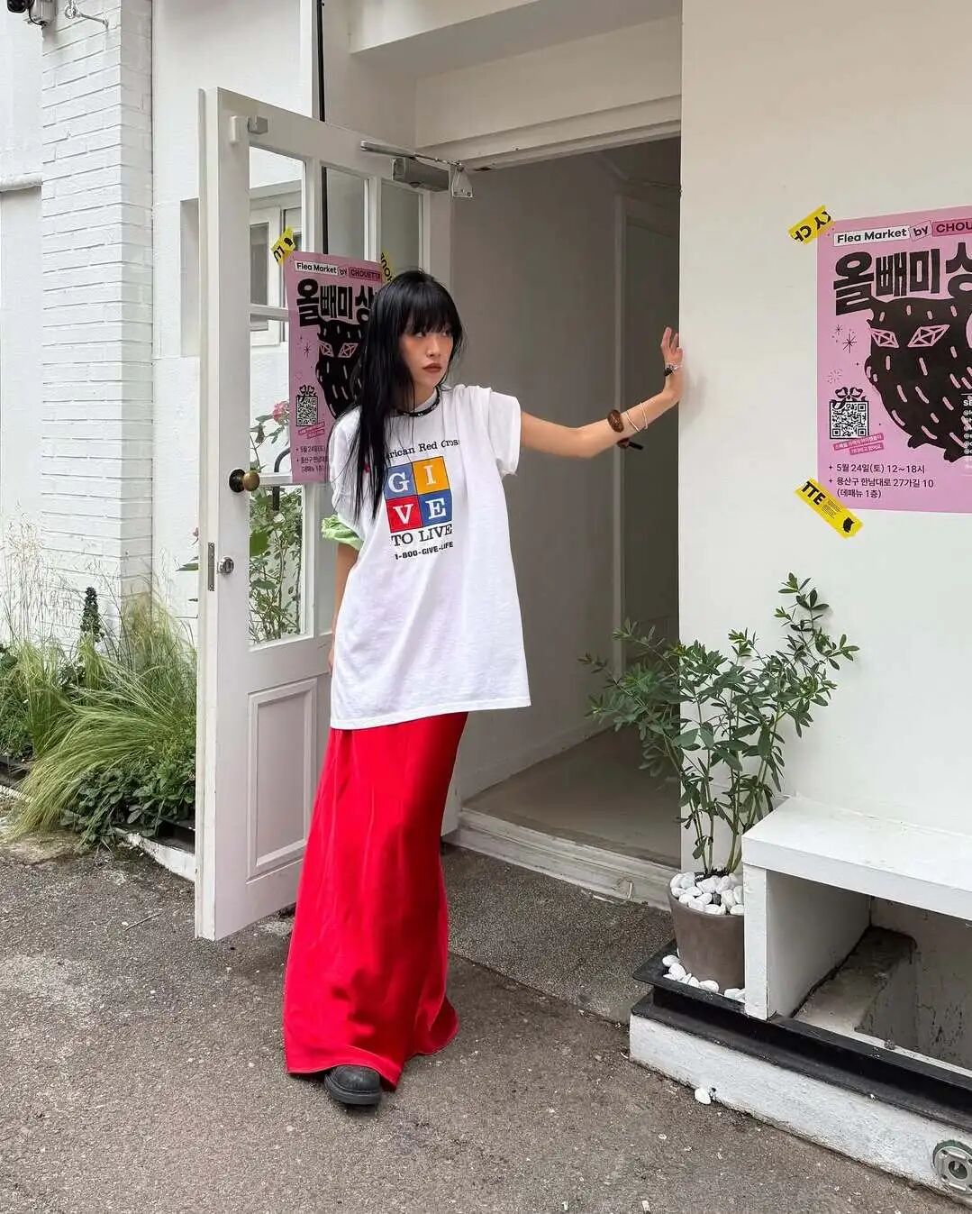 现在slogan T恤在穿着上有了很多新灵感,比如搭配一条飘逸的缎面半身裙,让文字的硬朗与半裙的柔软形成有趣的对话。这种对比不仅是视觉上的,也是概念上的——理性与感性、力量与柔美在此融合。