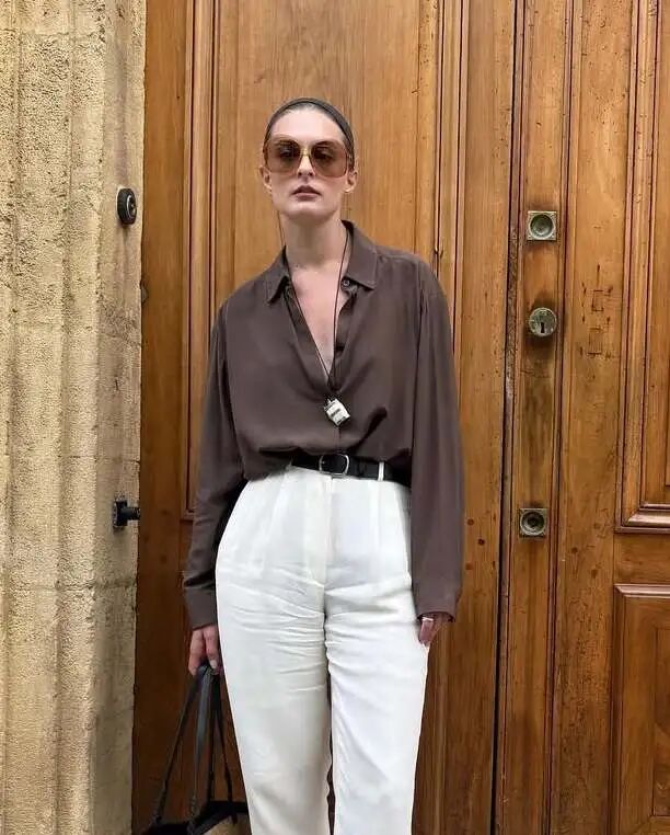 昼夜温差?不存在的!虽然干燥的秋风吹起来了,但秋老虎的威力不容小觑,在夏日穿搭的基础上增加一件棕色系单品,不仅能够适当保留夏日的清爽感,避免全身包裹过严显得厚重,能抗住午后的热辣,更能在秋意渐浓的夜晚带来温暖。