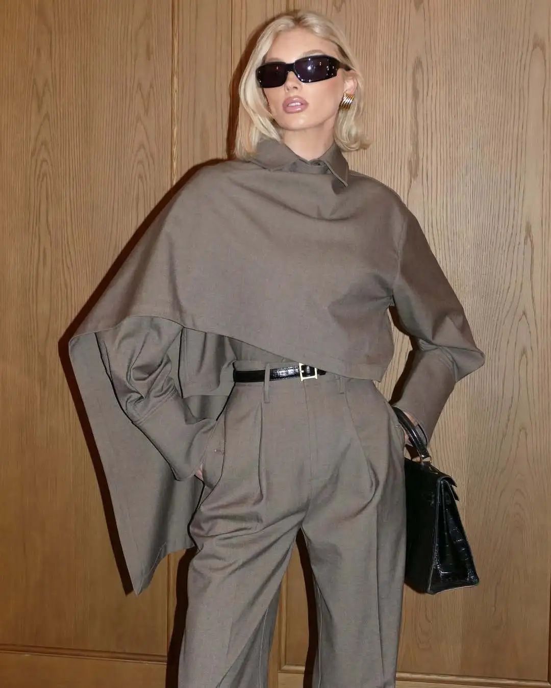 或是加一条细窄的皮带,把慵懒的廓形收一收,就能在松弛与干练之间找到平衡。糖炒栗子风并不是单一的温暖色块,而是一种层层递进的生活质感:软糯、温润,却始终带着一点点精致和锋芒。