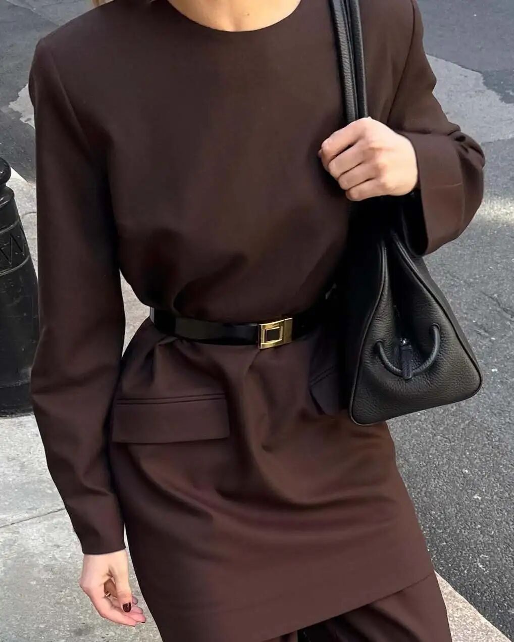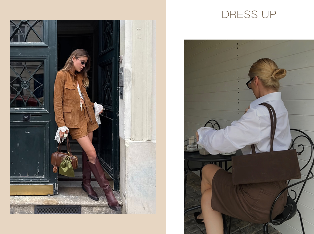 余热尚未散尽,夏末的蝉鸣还在单曲循环,已经开始期待起街头巷尾飘来一丝熟悉的甜香……当棕色系的身影开始出现,就像糖炒栗子的香气提前飘来,这种温暖又治愈的色调,正成为衔接季节的最佳穿搭语言,散发着柔和又高级的治愈感。