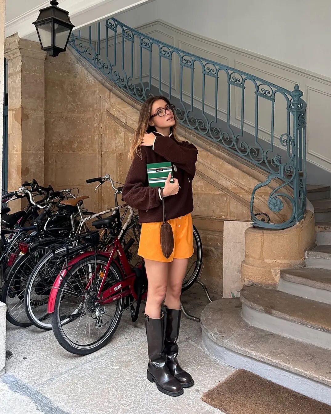 秋天可是时髦er光腿配靴子的极佳季节,不像冬天or夏天,要么担心冻出“老寒腿”,要么捂出一腿痱子,修饰腿形的及膝靴正好适合搭配半裙或短裤,温度和风度一起拿捏。